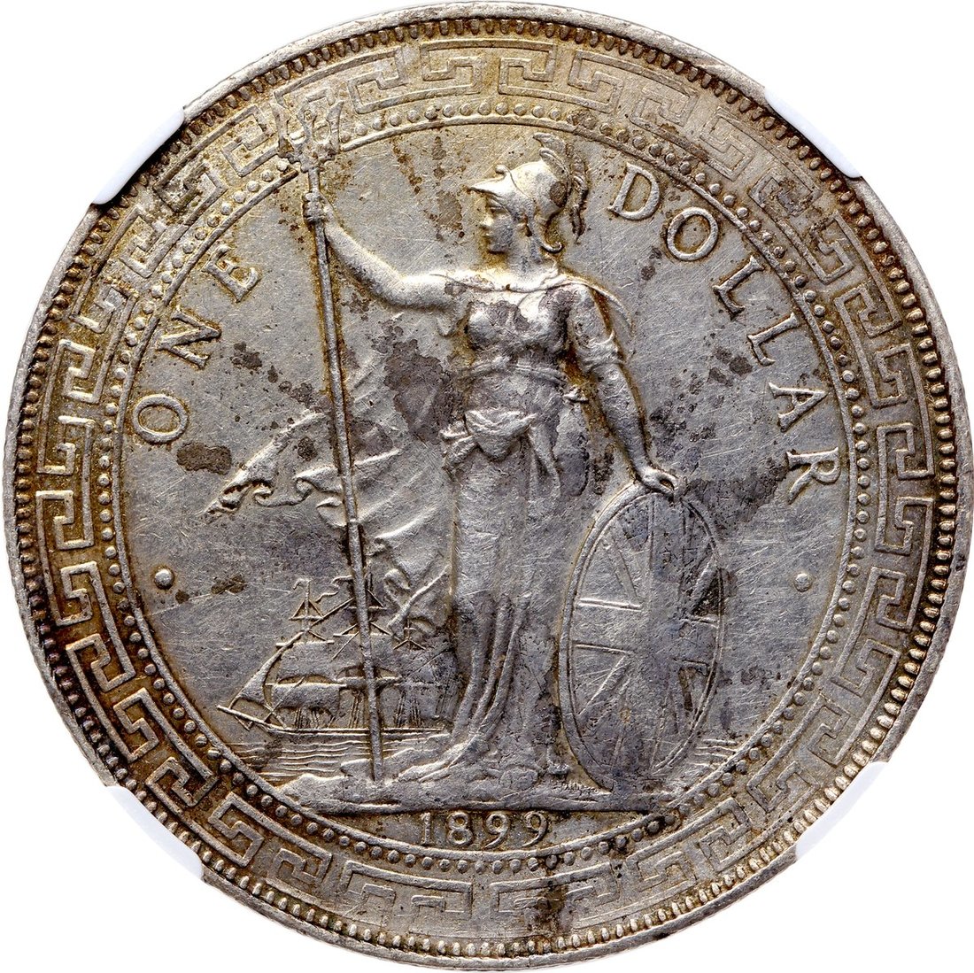 Great Britain, silver trade dollar, 1899-B, NGC AU Details Cleaned