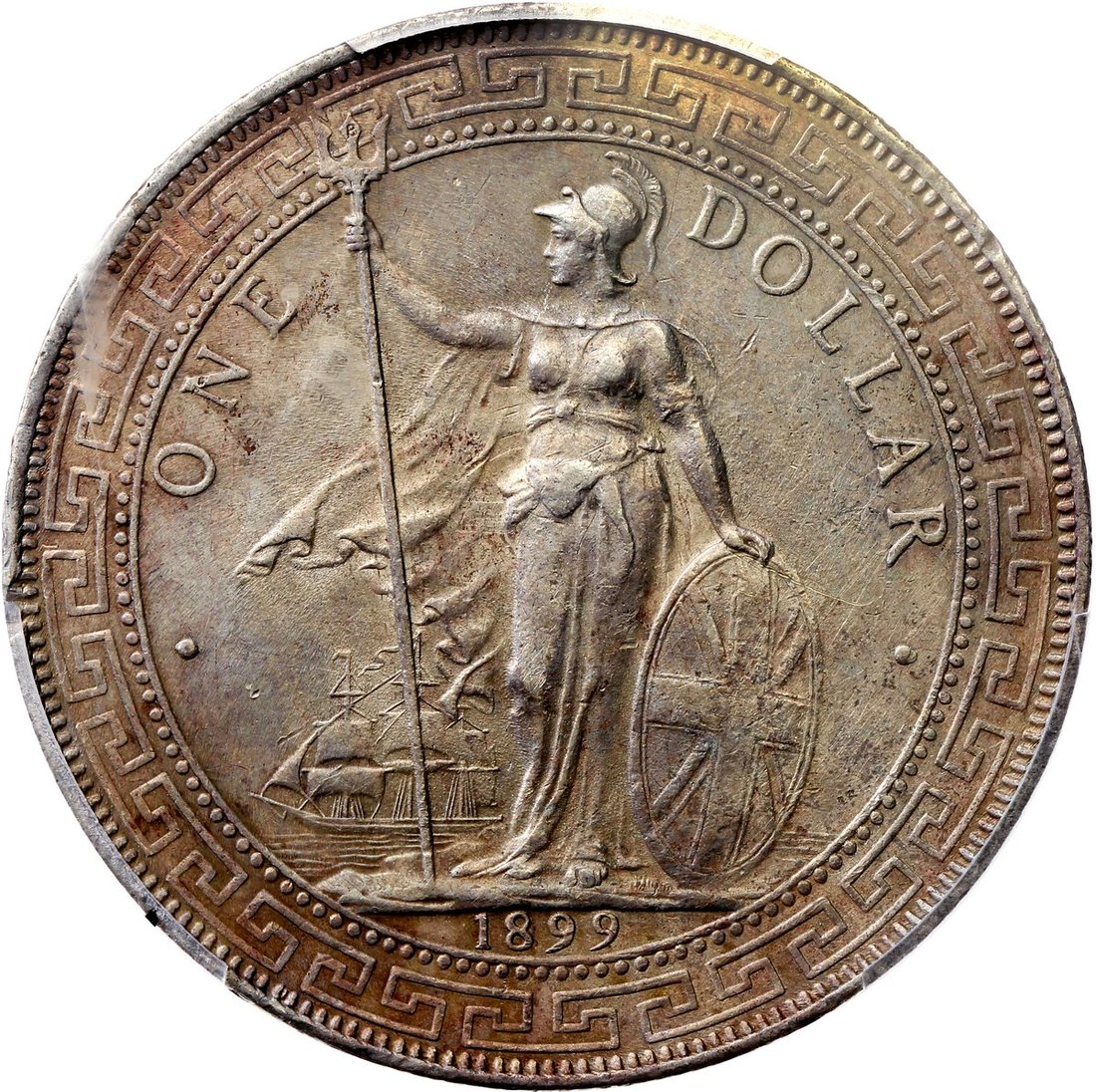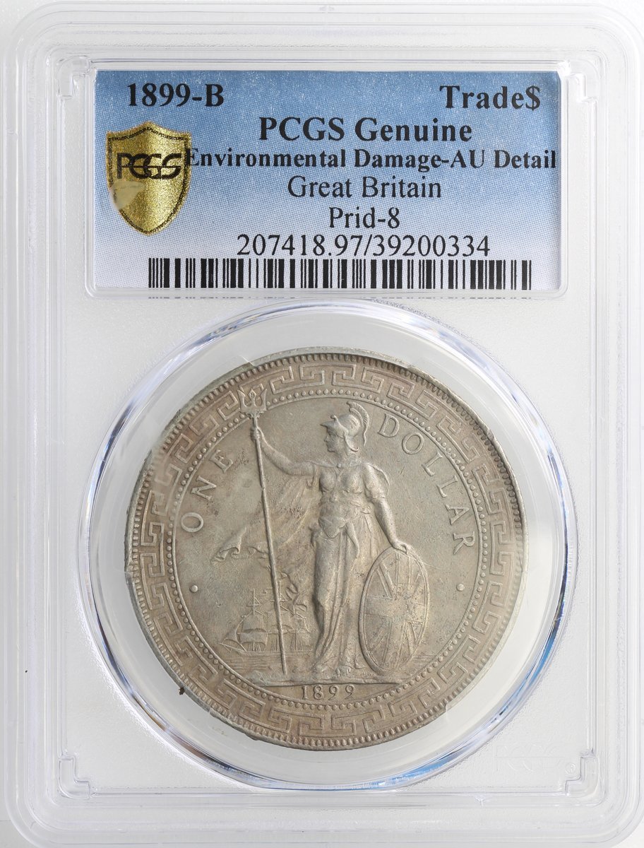 1899B英國貿易銀元,PCGS AU Detail,環境損害