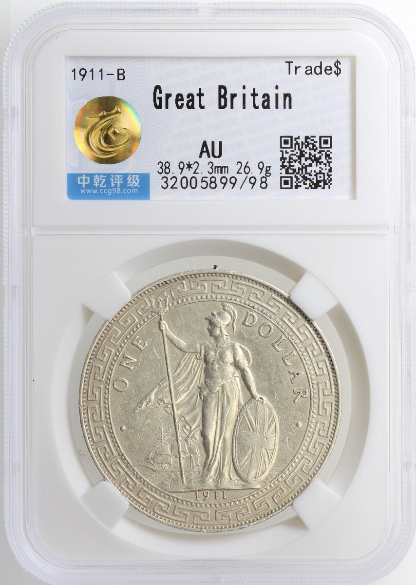 Great Britain, group of 3x silver trade dollars, 1902-B, 1911-B and 1912-B, all graded by Zhong Qian: AU50, AU and XF45 respectively (3)