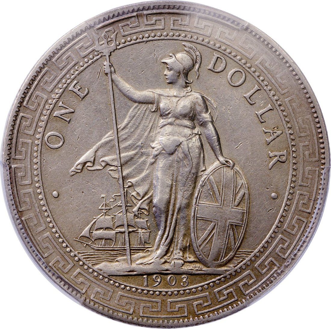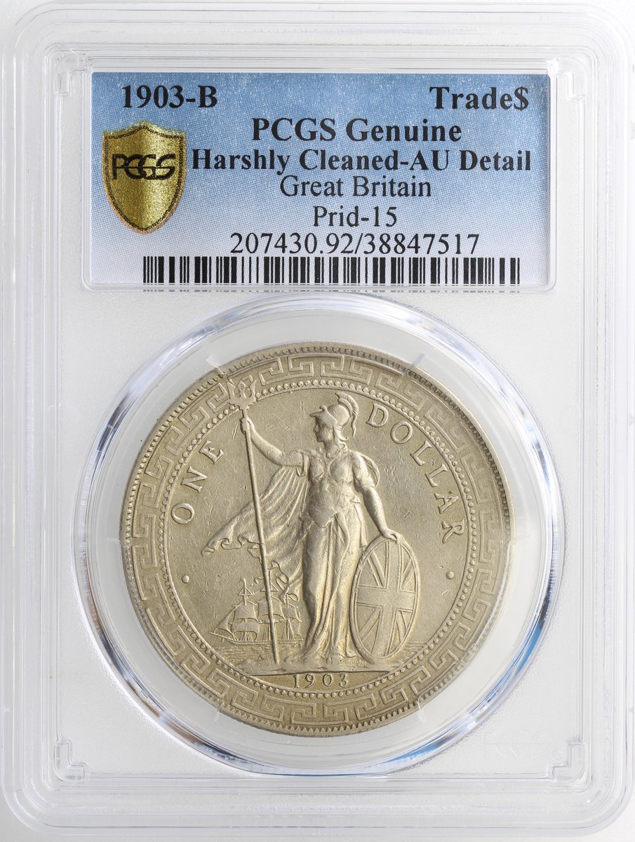 Great Britain, silver trade dollar, 1903-B, (Prid 15), PCGS AU Detail (Harshly Cleaned)