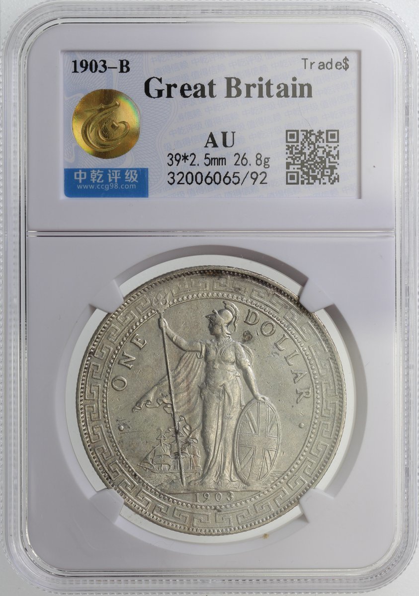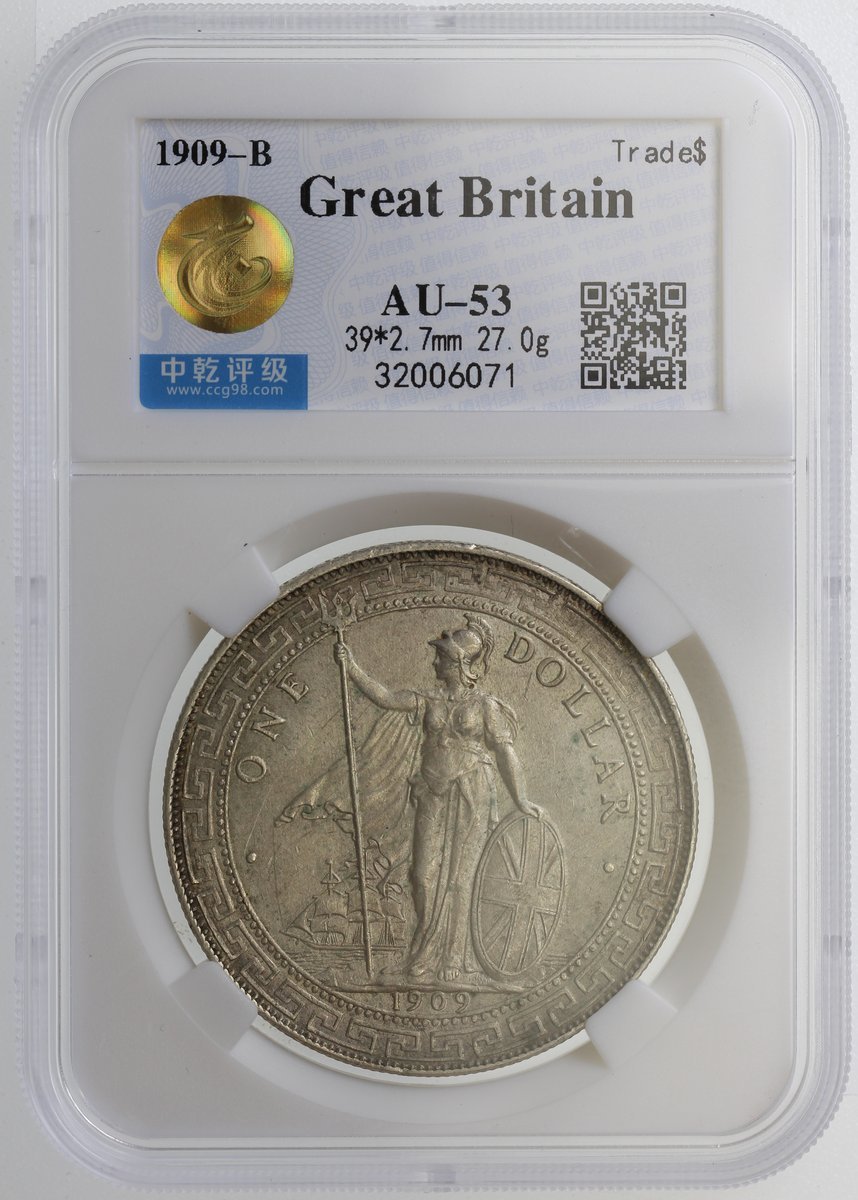 1903-B及1909-B英國貿易銀元2枚,中乾分別評AU及AU53