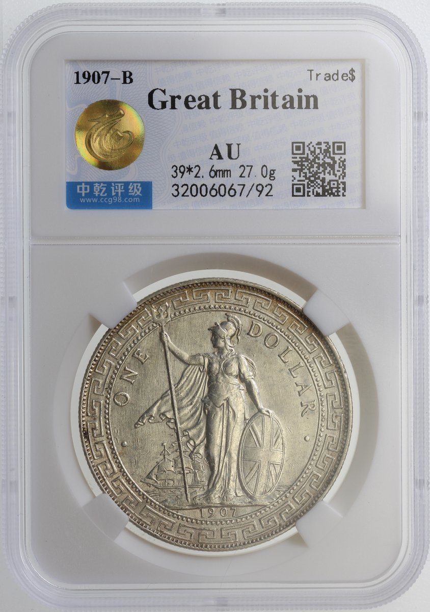 1907-B及1909-B英國貿易銀元2枚,中乾均評AU