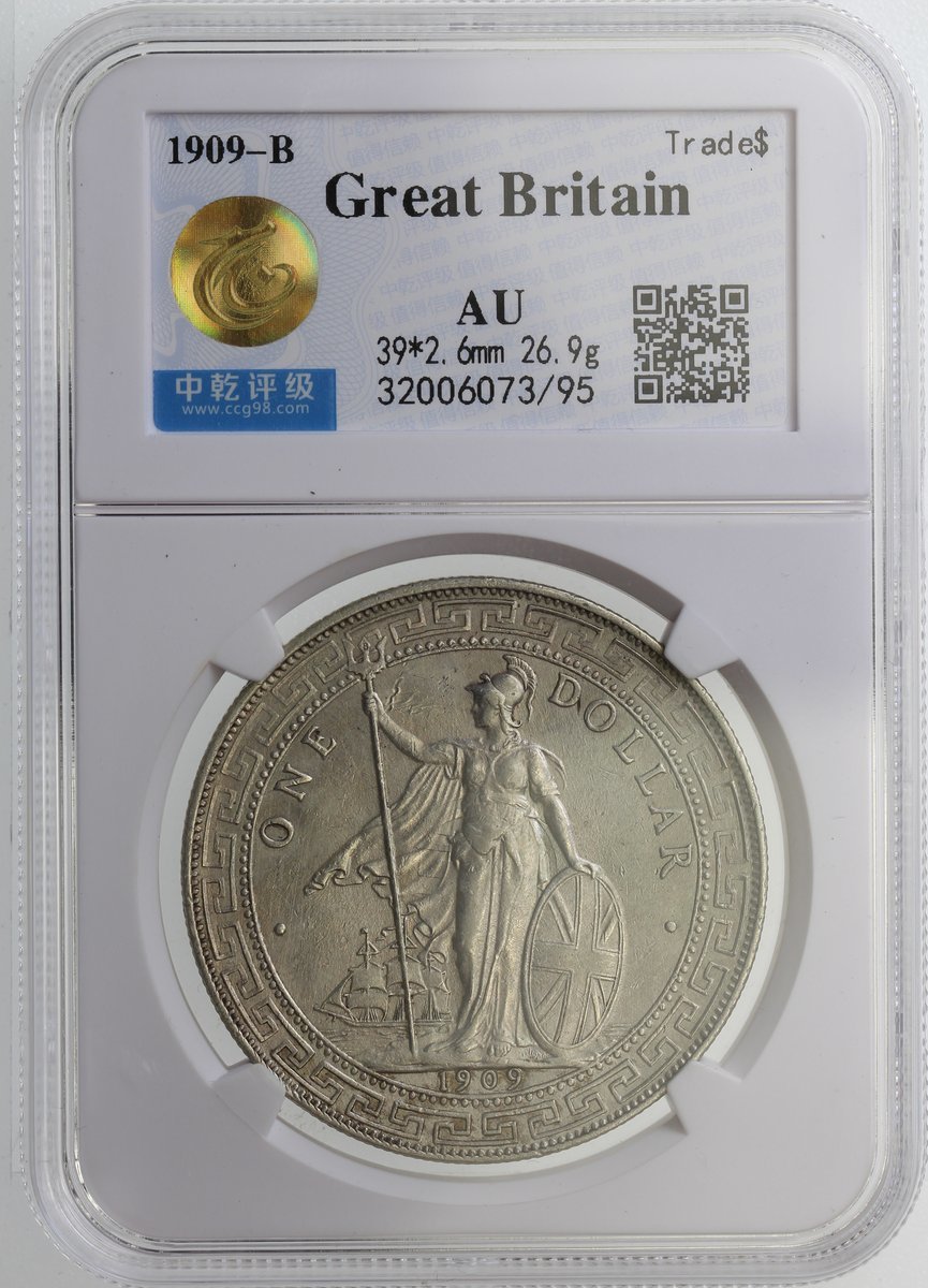 Great Britain, lot of 2x silver trade dollars, 1907-B and 1909-B, both graded Zhong Qian AU (2)