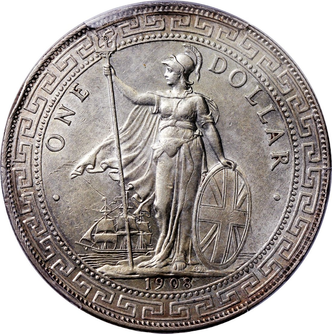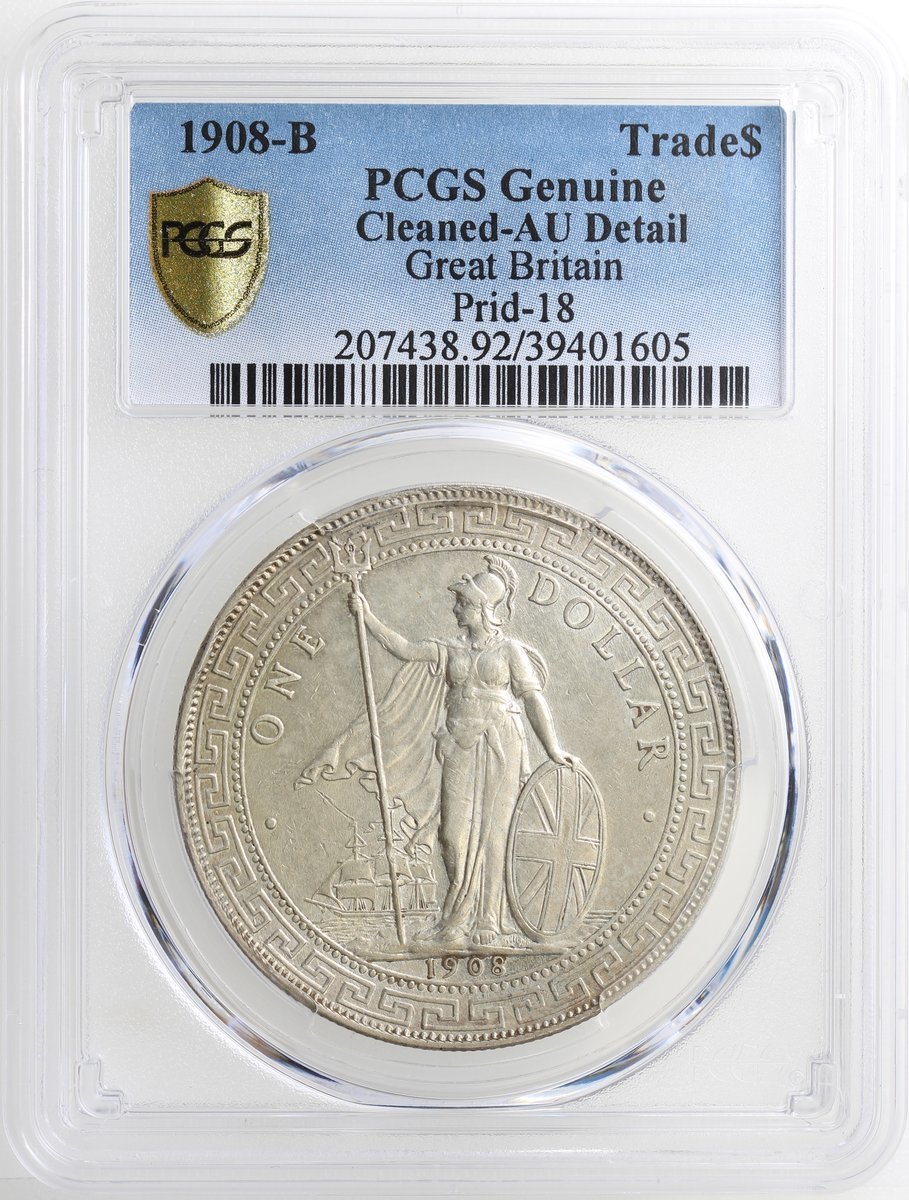 1908-B英國貿易銀元,PCGS AU Detail,帶原光,有清洗
