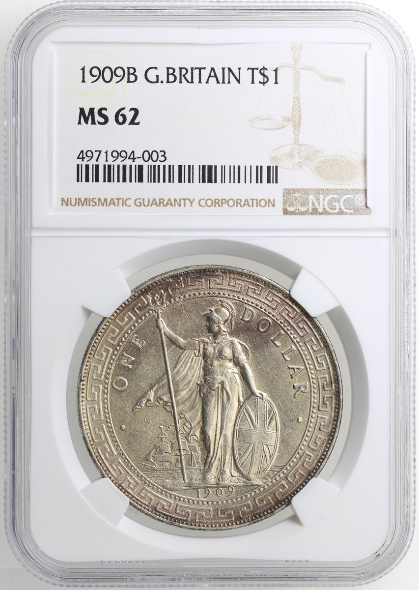 Great Britain, silver $1, 1909-B, Trade Dollar, with lustre, NGC MS62.