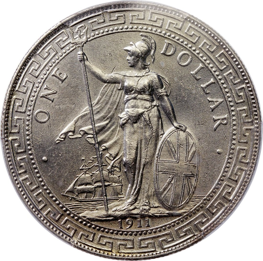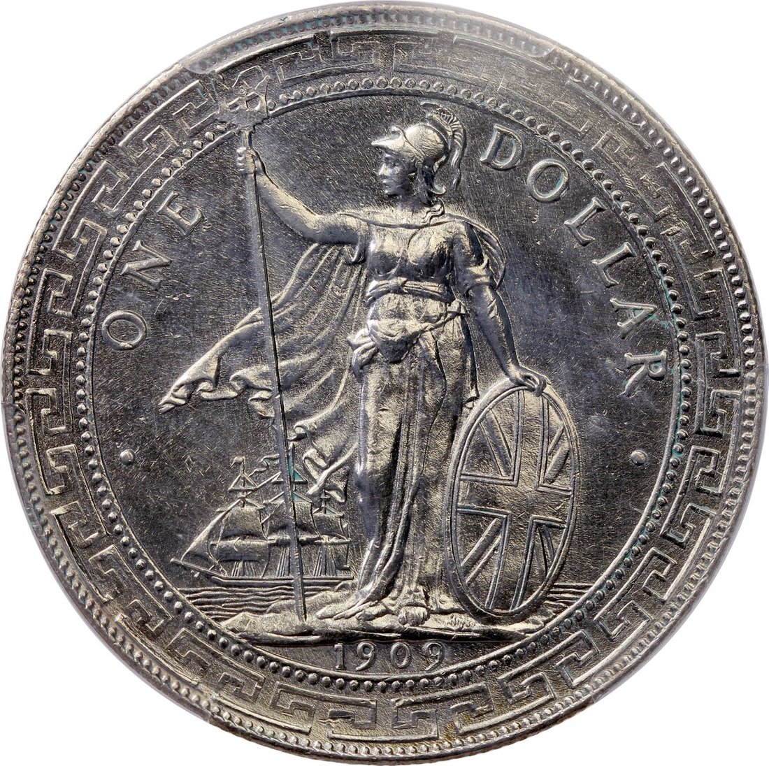 Great Britain, lot of 2x silver trade dollars, 1909-B and 1911-B,
