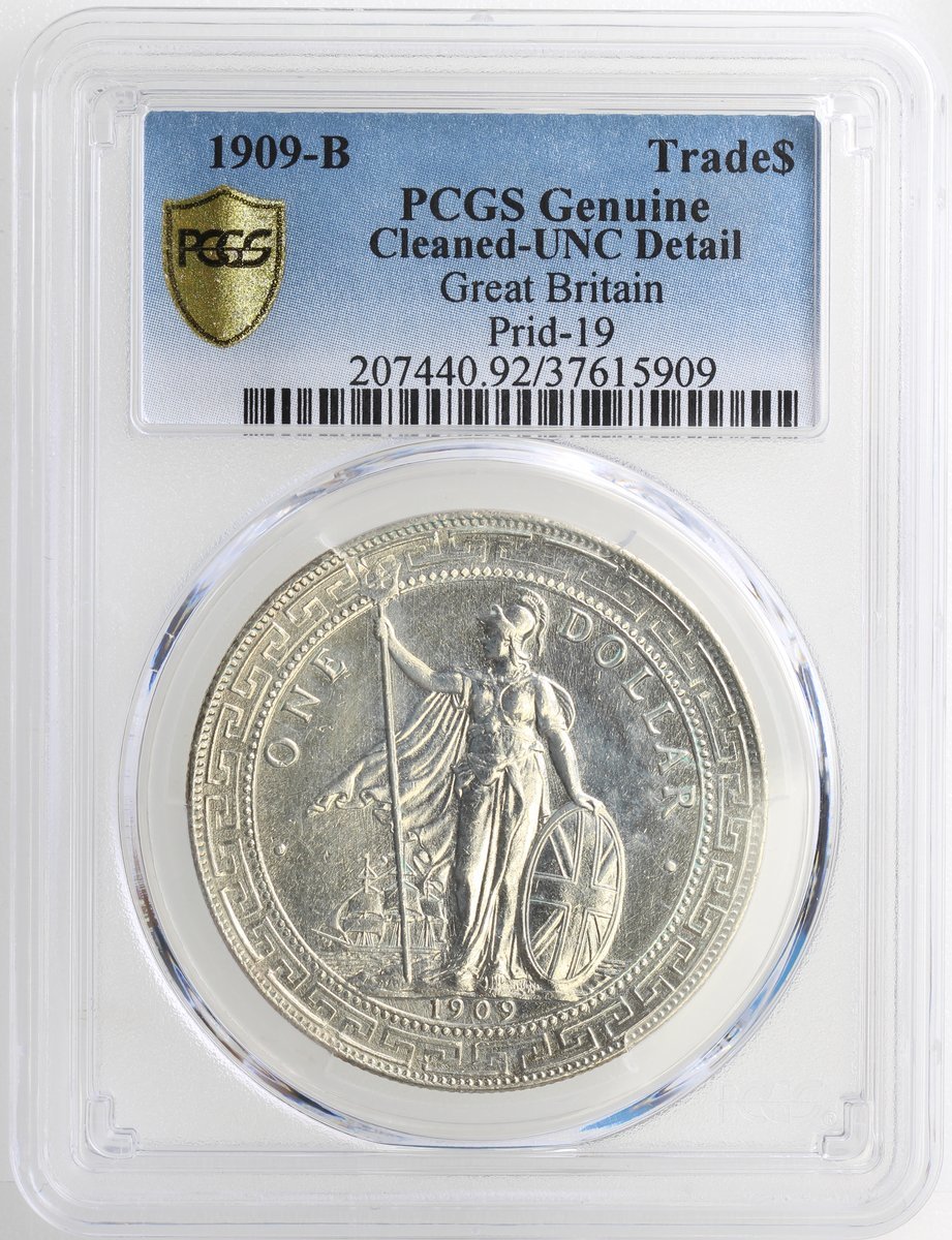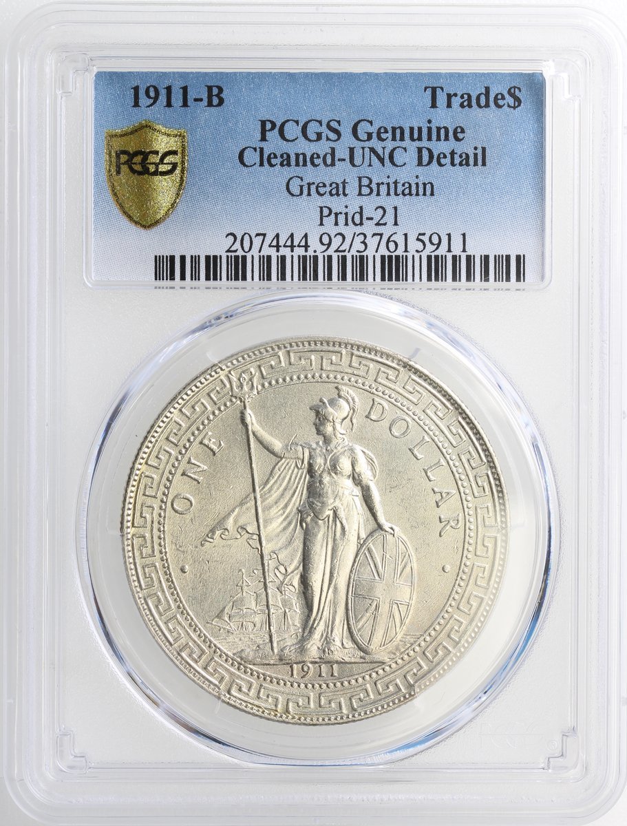 1909-B及1911-B英國貿易銀元2枚,均PCGS UNC Detail,有清洗