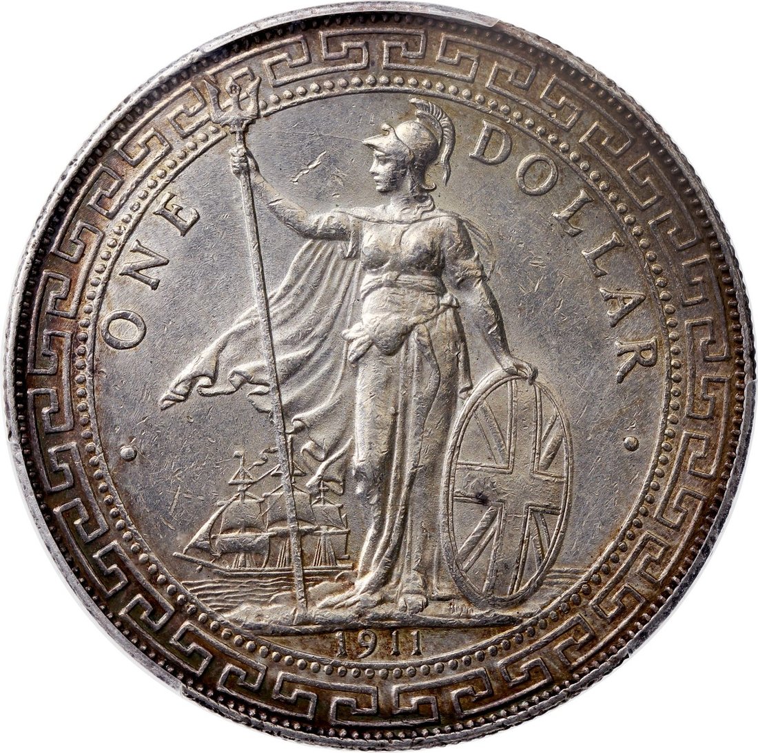 1911-B英國貿易銀元,PCGS UNC Detail,有清洗