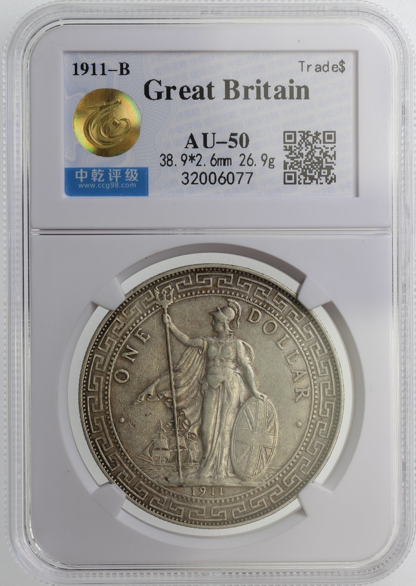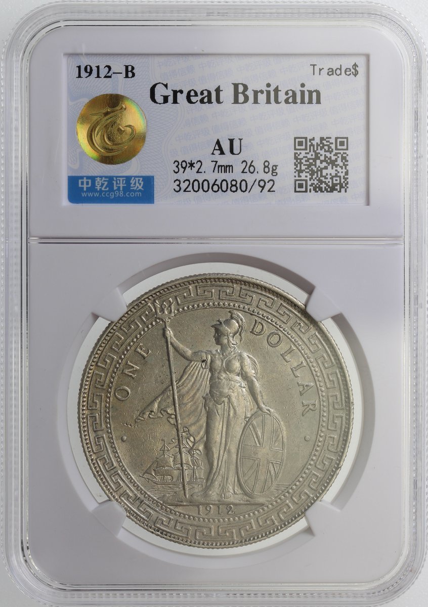 1911-B及1912-B英國貿易銀元2枚,中乾分別評AU50及AU