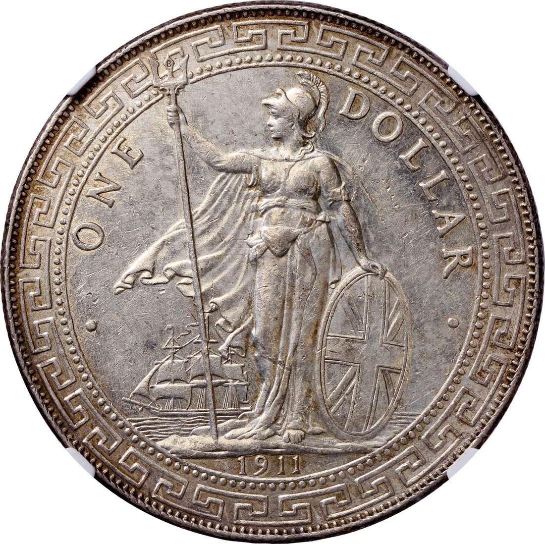 Great Britain, lot of 2x silver trade dollars, 1911-B and 1912-B, Zhong Qian AU58 and AU respectively (2)