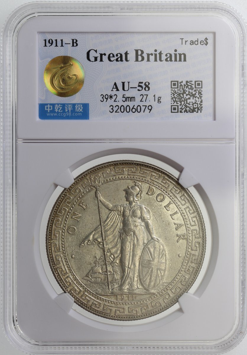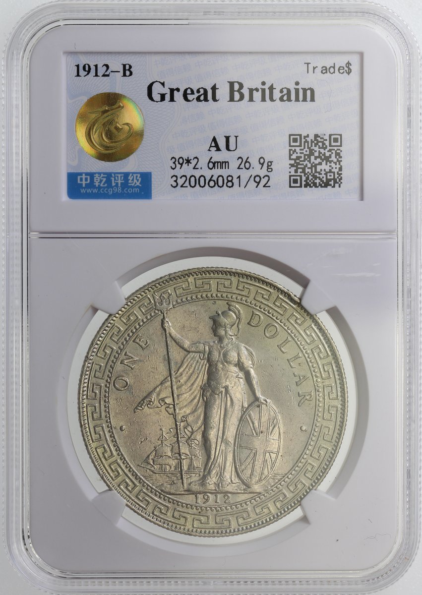 1911-B及1912-B英國貿易銀元2枚,中乾分別評AU58及AU