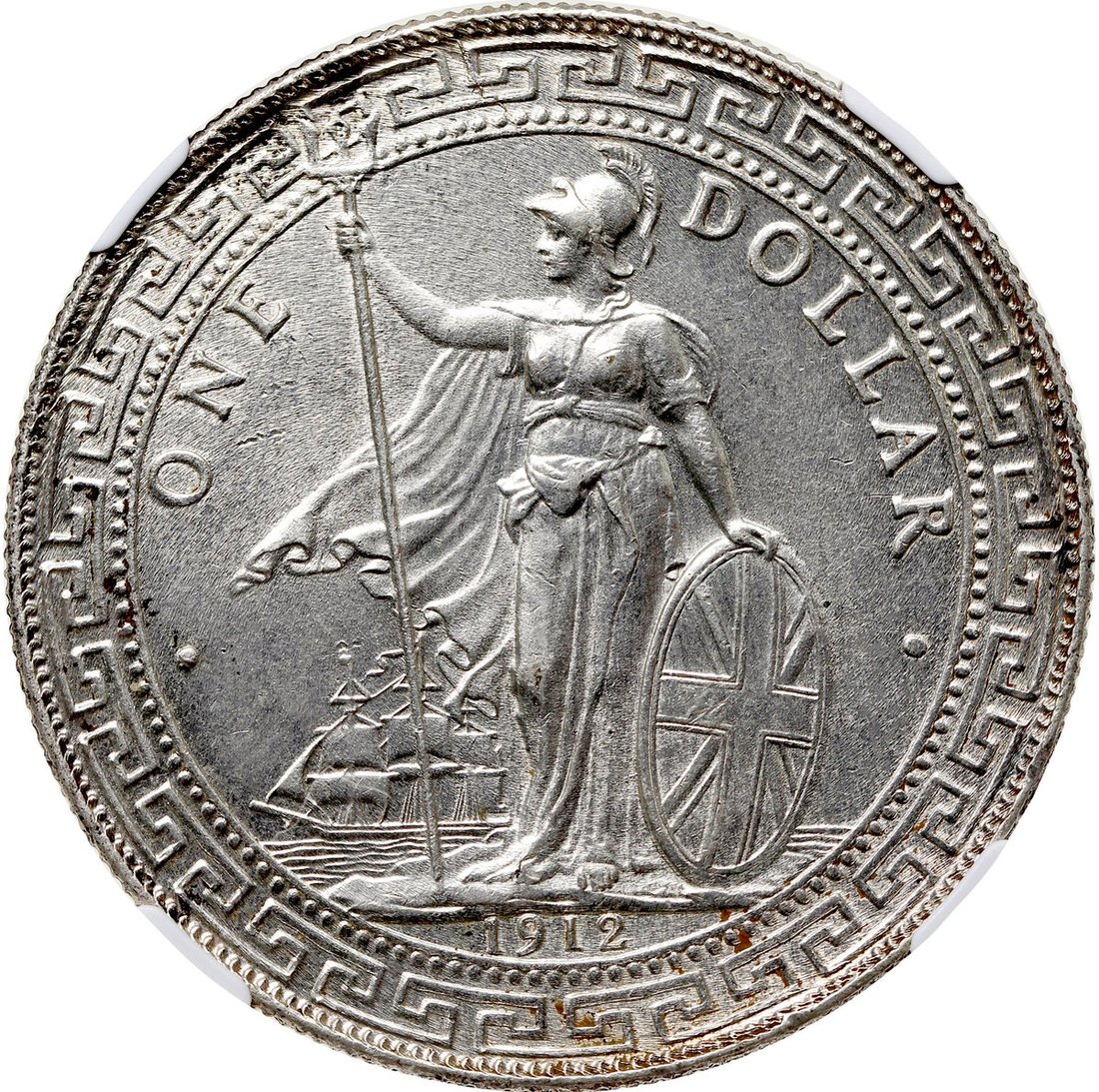 Great Britain, silver trade dollar, 1912-B, graded NGC UNC Details (Cleaned)
