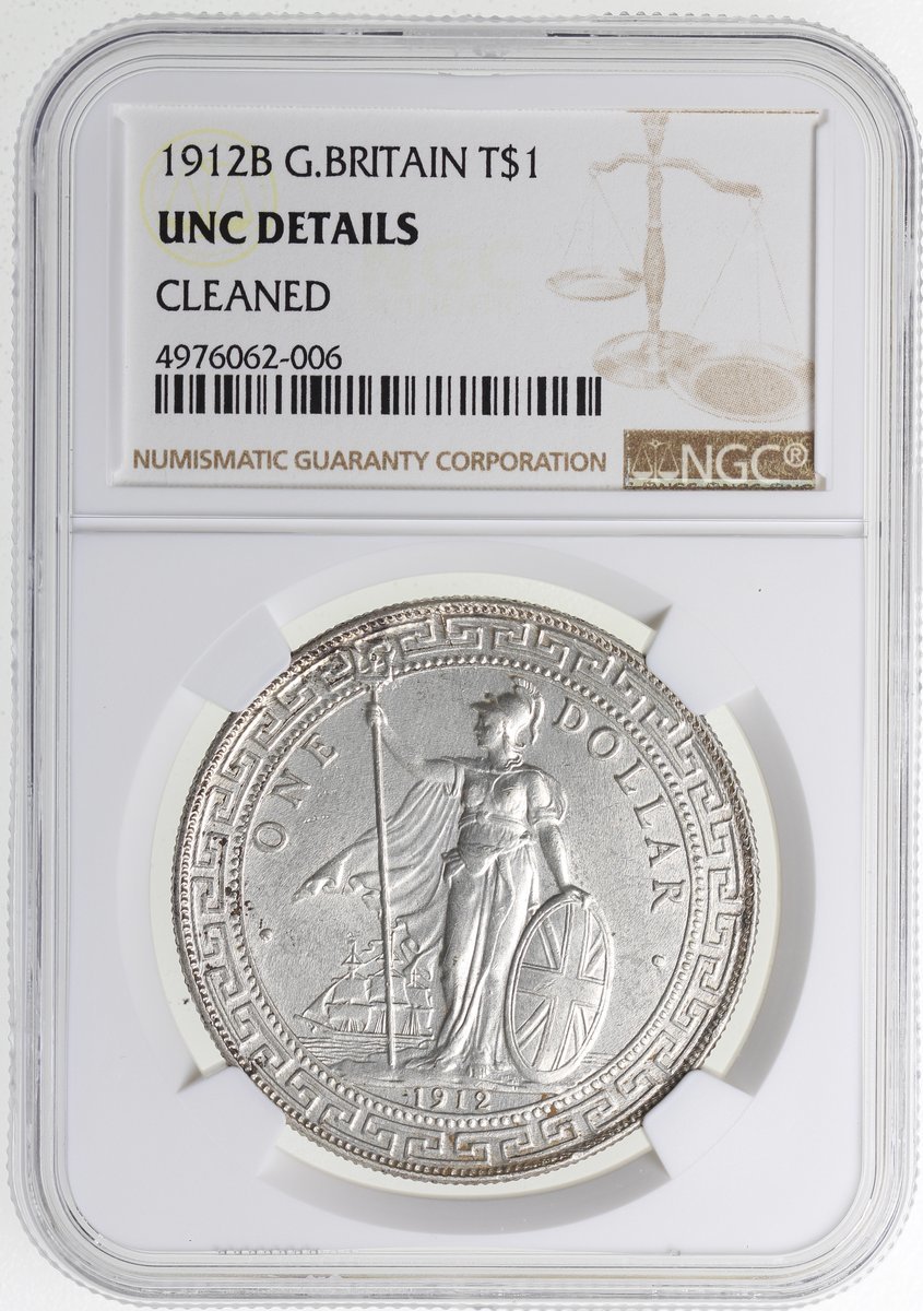 1912-B英國貿易銀元, NGC UNC Details,有清洗