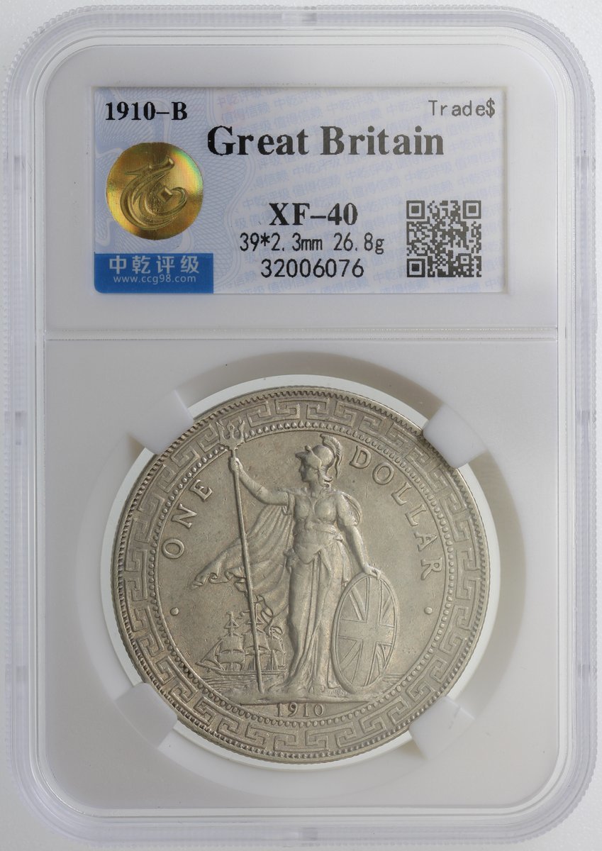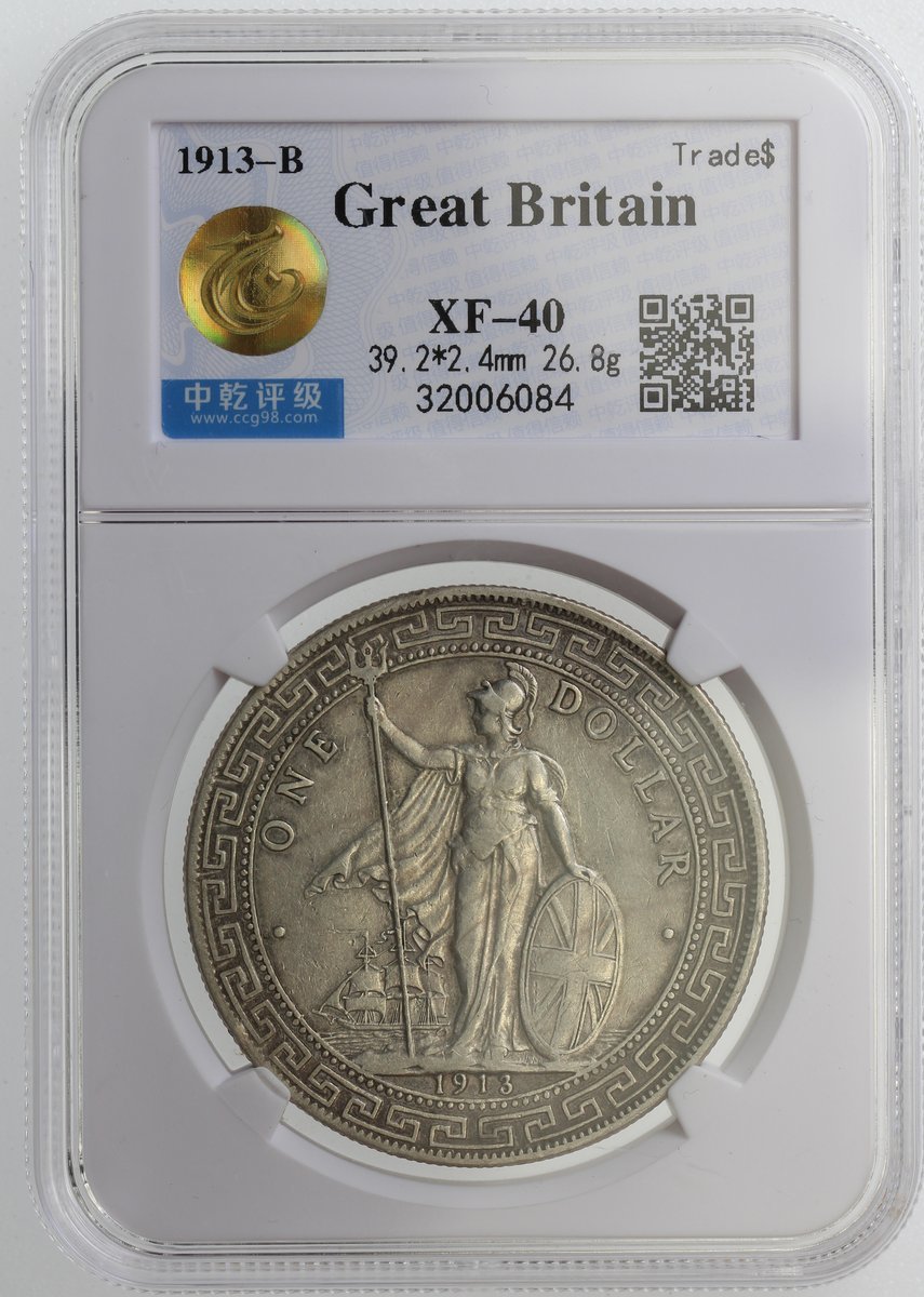 1910-B及1913-B英國貿易銀元2枚,中乾均評XF40,後者年份罕見