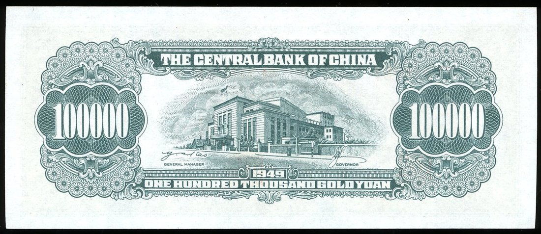 The Central Bank of China, 100,000 gold Yuan, 1949, serial number BA278767, (Pick 422), about uncirculated