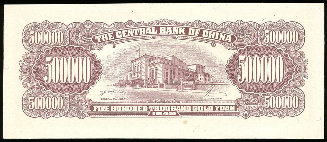 The Central Bank of China, 500,000 gold Yuan, 1949, serial number AN070191, (Pick 424), about uncirculated