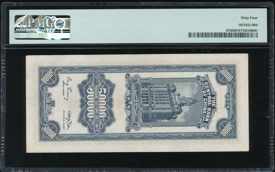 1948年中央銀行關金50000元,編號CZ723274,PMG 64