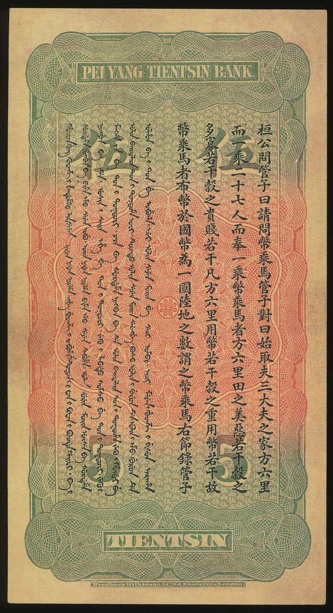 Pei Yang Tientsin Bank, 5 taels, CONTEMPORARY COPY, 1910, almost uncirculated