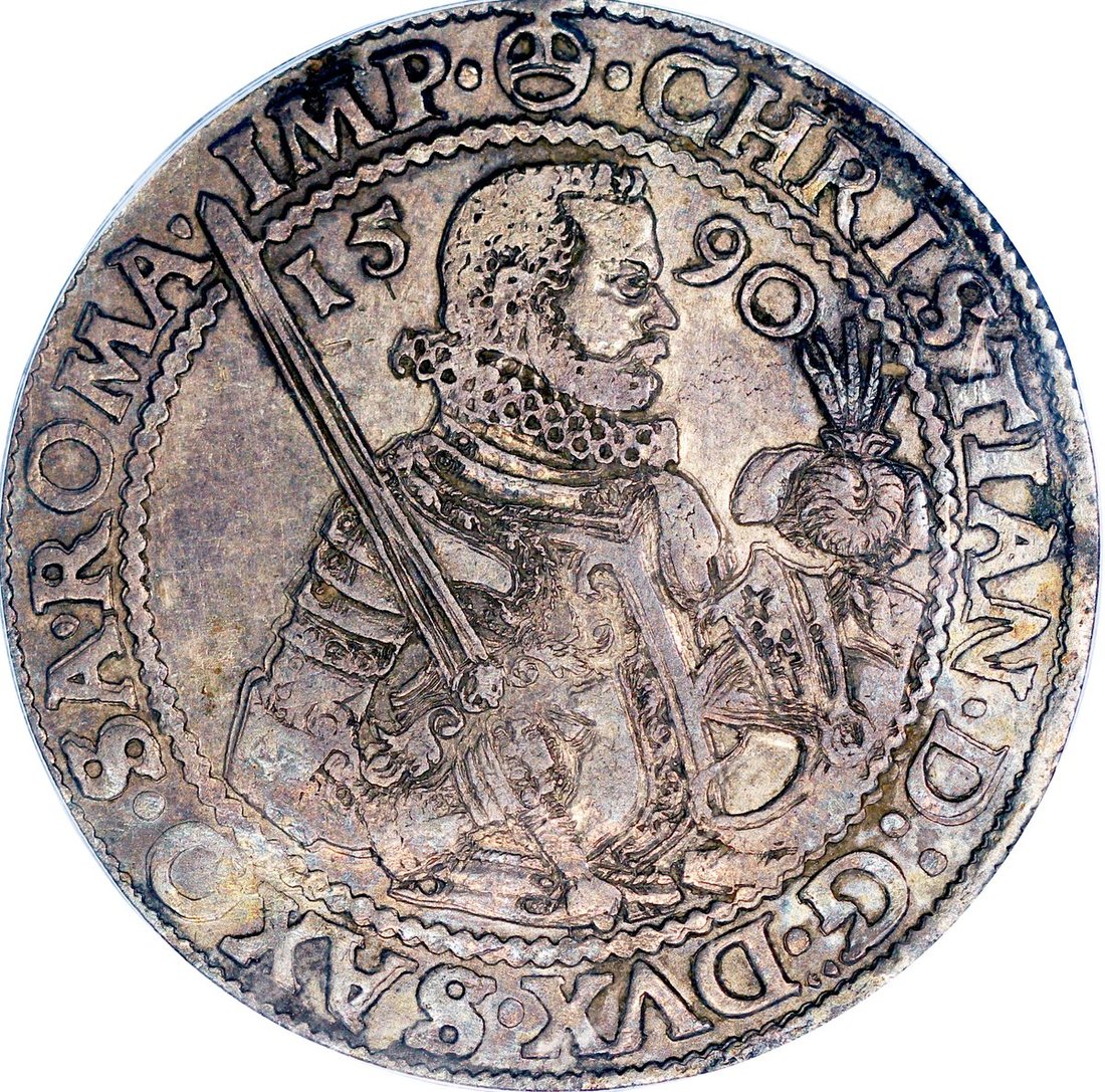 1590-HB德國薩克森1泰勒銀元,PCGS AU Detail,有工具改動