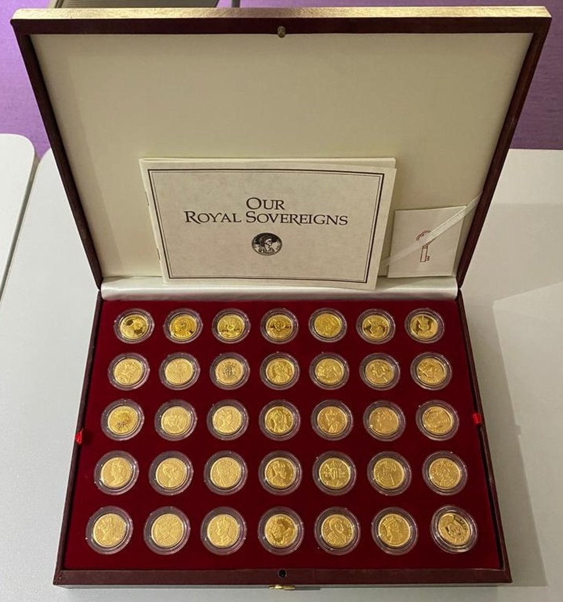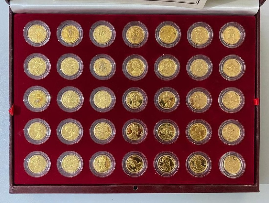 Great Birtain, "The Royal Sovereigns" commemorative set of 70x silver medals pated in 22 carat gold, uncirculated in original packaging with the certificate of authenticity (1 set of 70 medals)