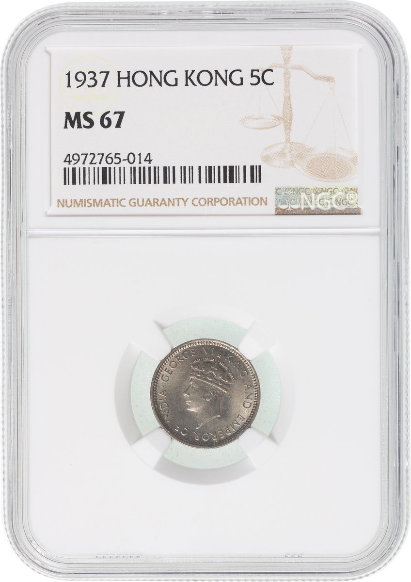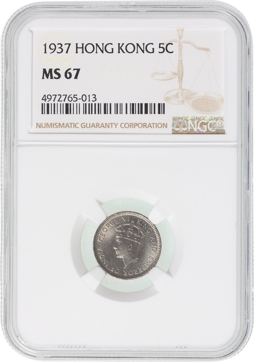 1937年香港5仙一組3枚,分別評NGC MS66+, MS67及 MS67