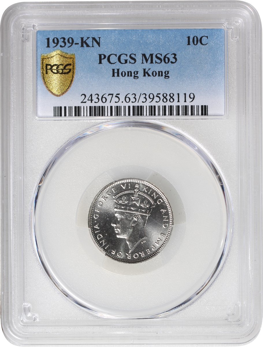 Hong Kong, cupro nickel 10 cents, 1939-KN, PCGS MS63
