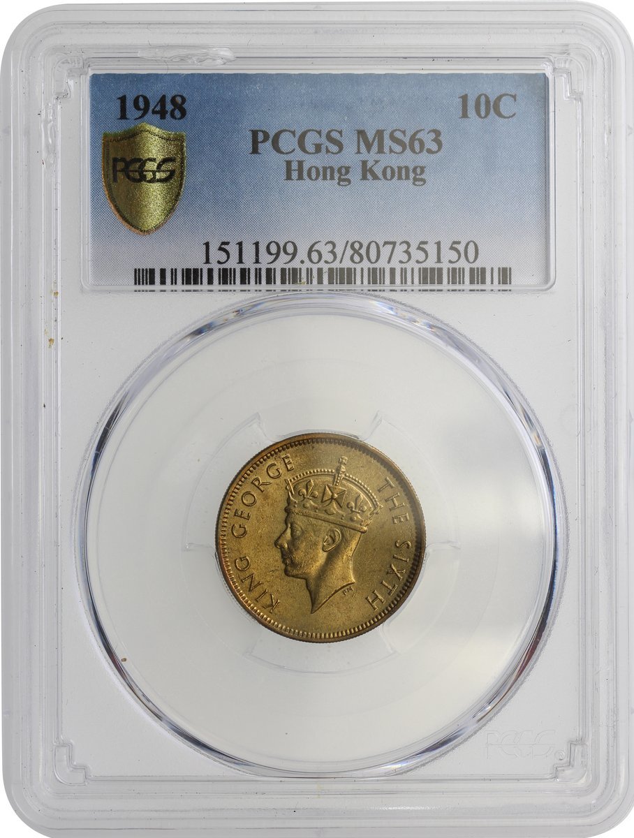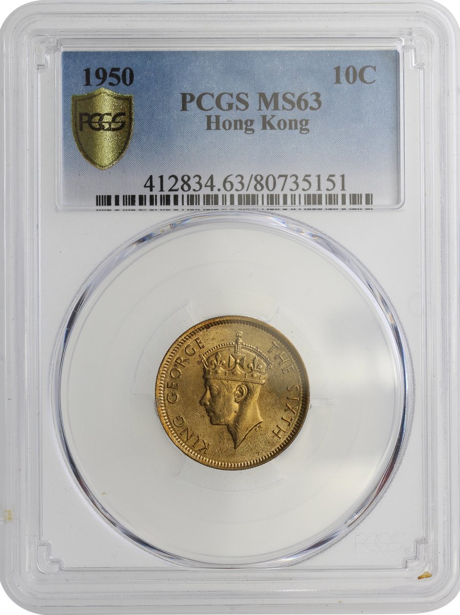 Hong Kong, a pair of copper nickel 10 cents, 1948 and 1950, both graded PCGS MS63 (2)