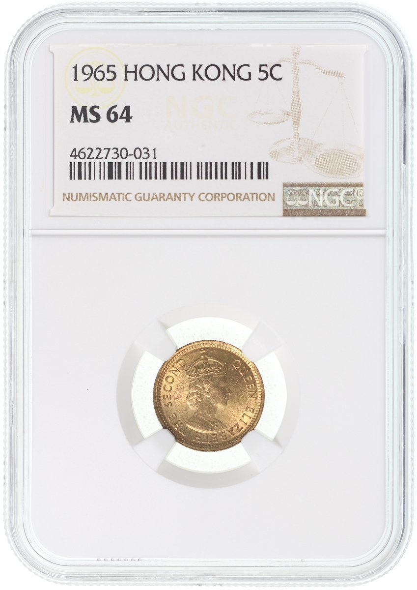 Hong Kong, nickel brass 5 cents, 1965, NGC MS64