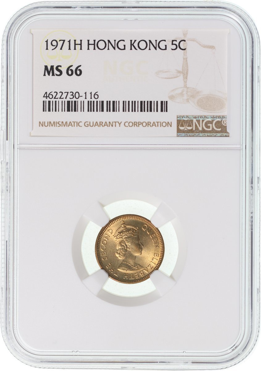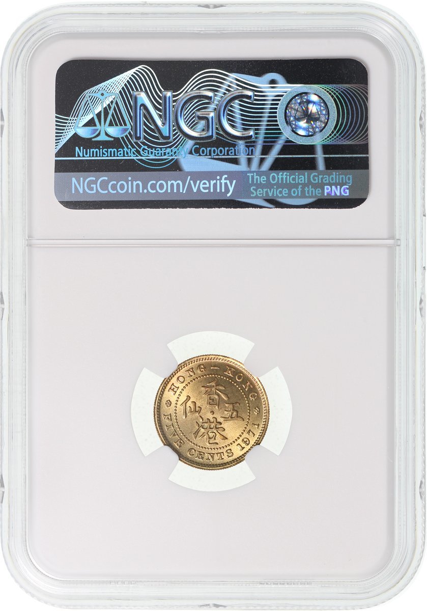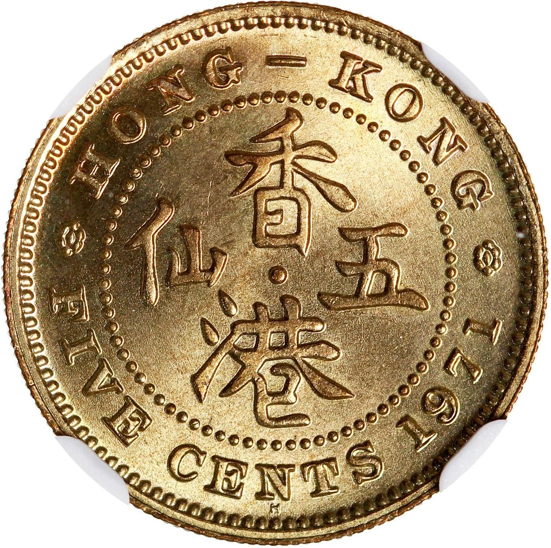 Hong Kong, nickel brass 5 cents, 1971-H, NGC MS66