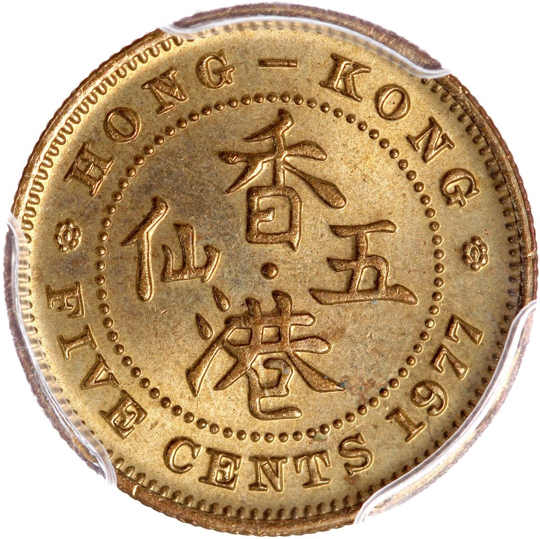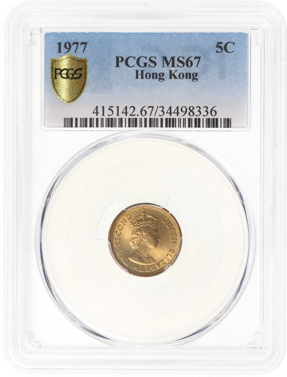 Hong Kong, nickel brass 5 cents, 1977, PCGS MS67