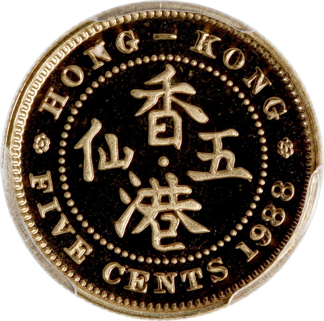 1988年香港5仙精鑄幣,PCGS PR69DCAM