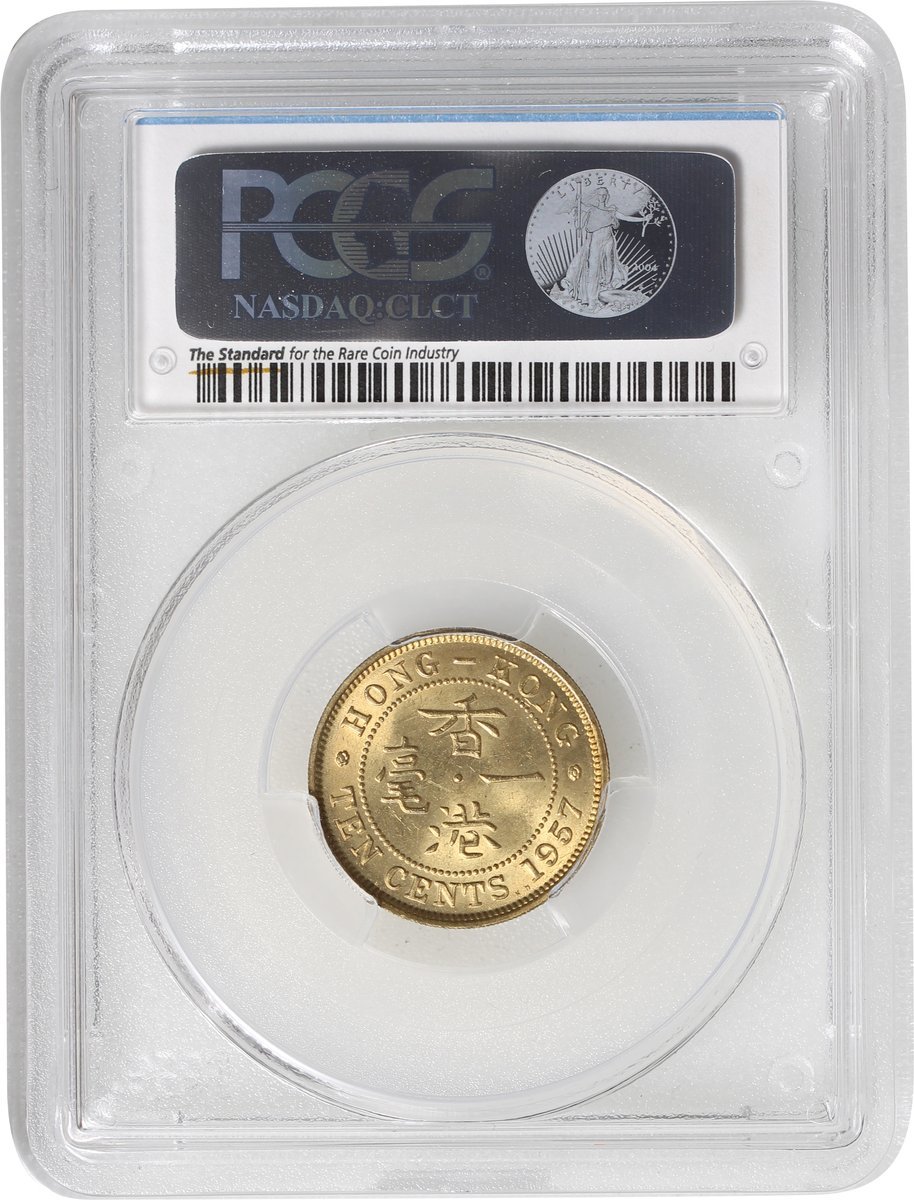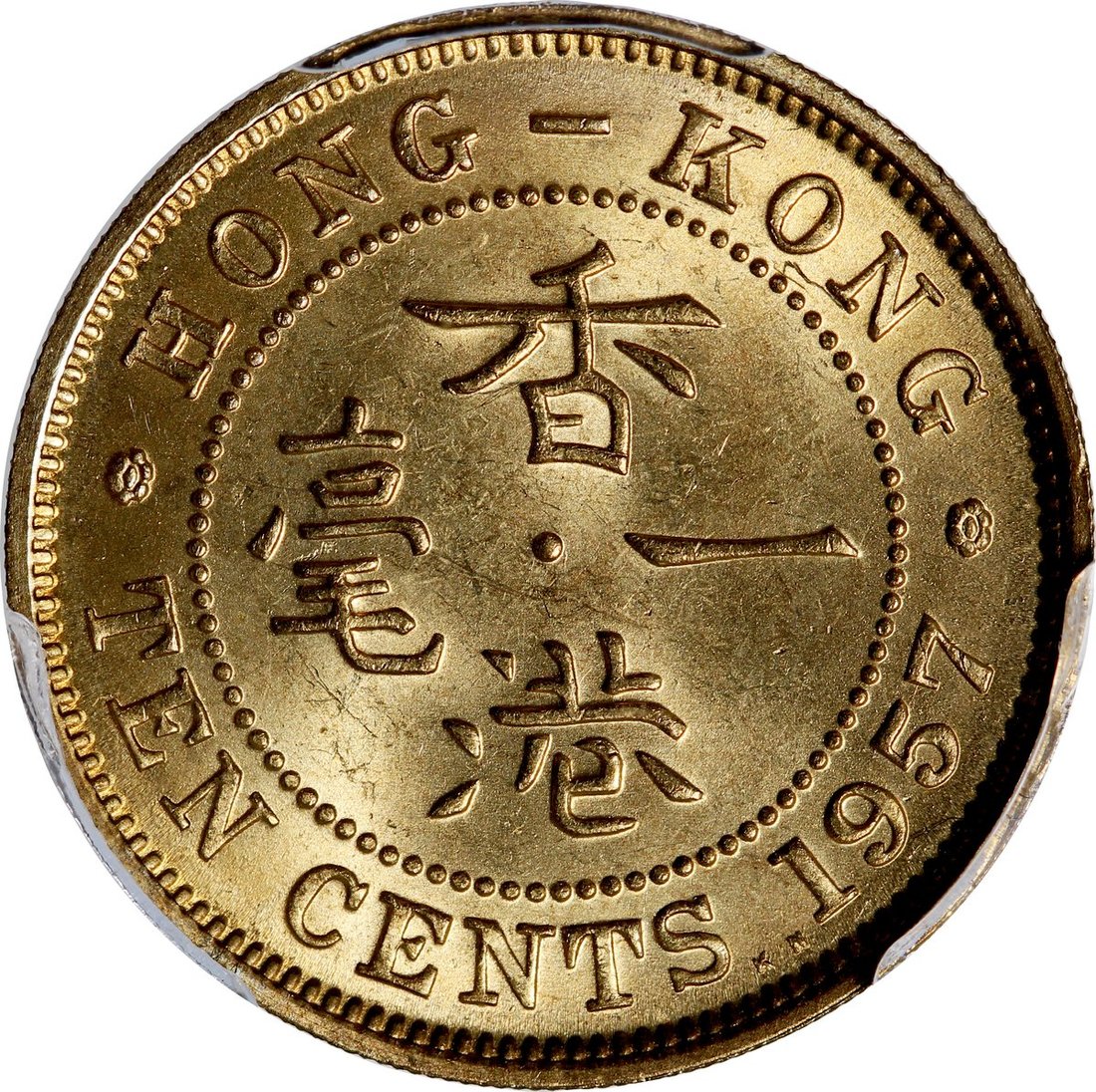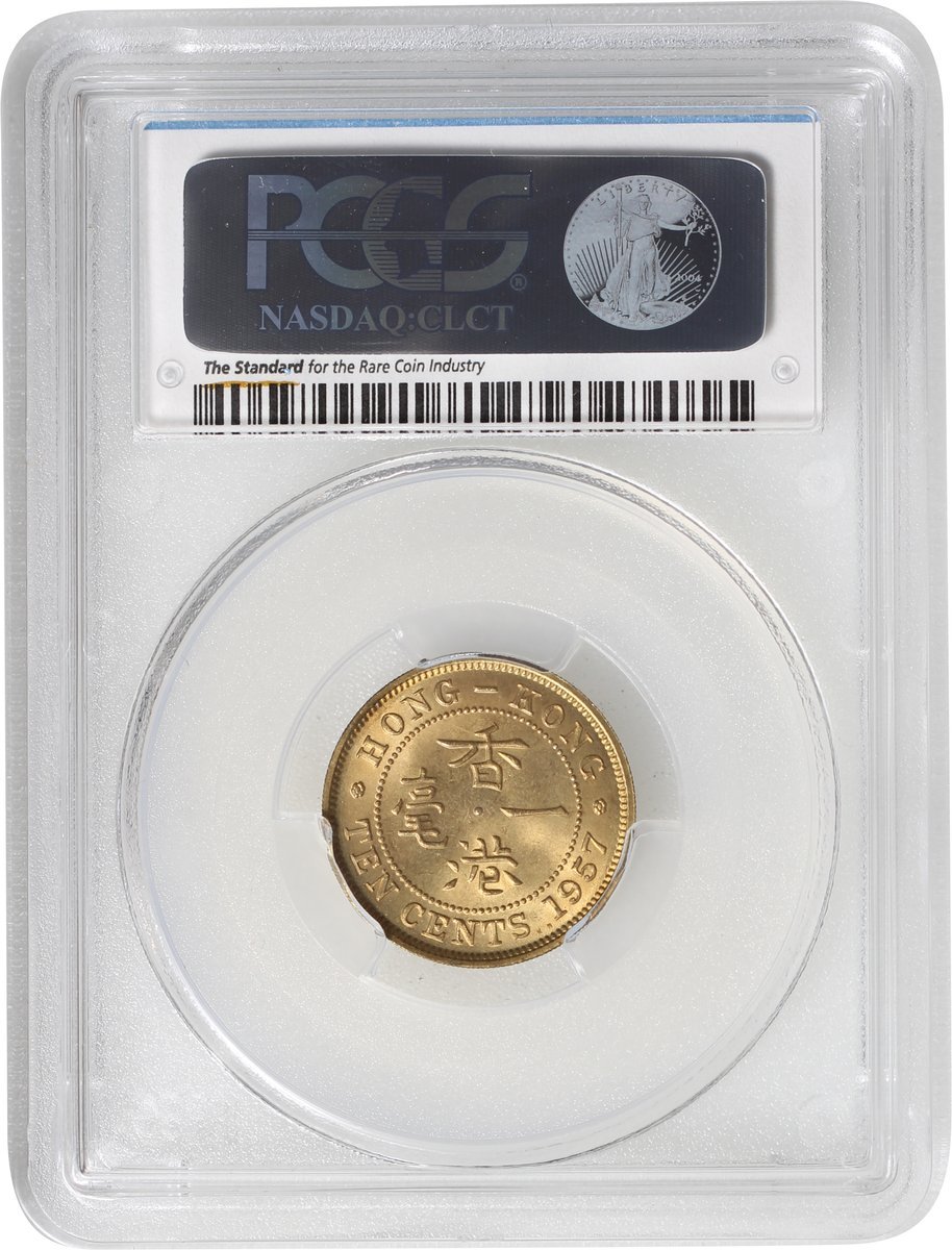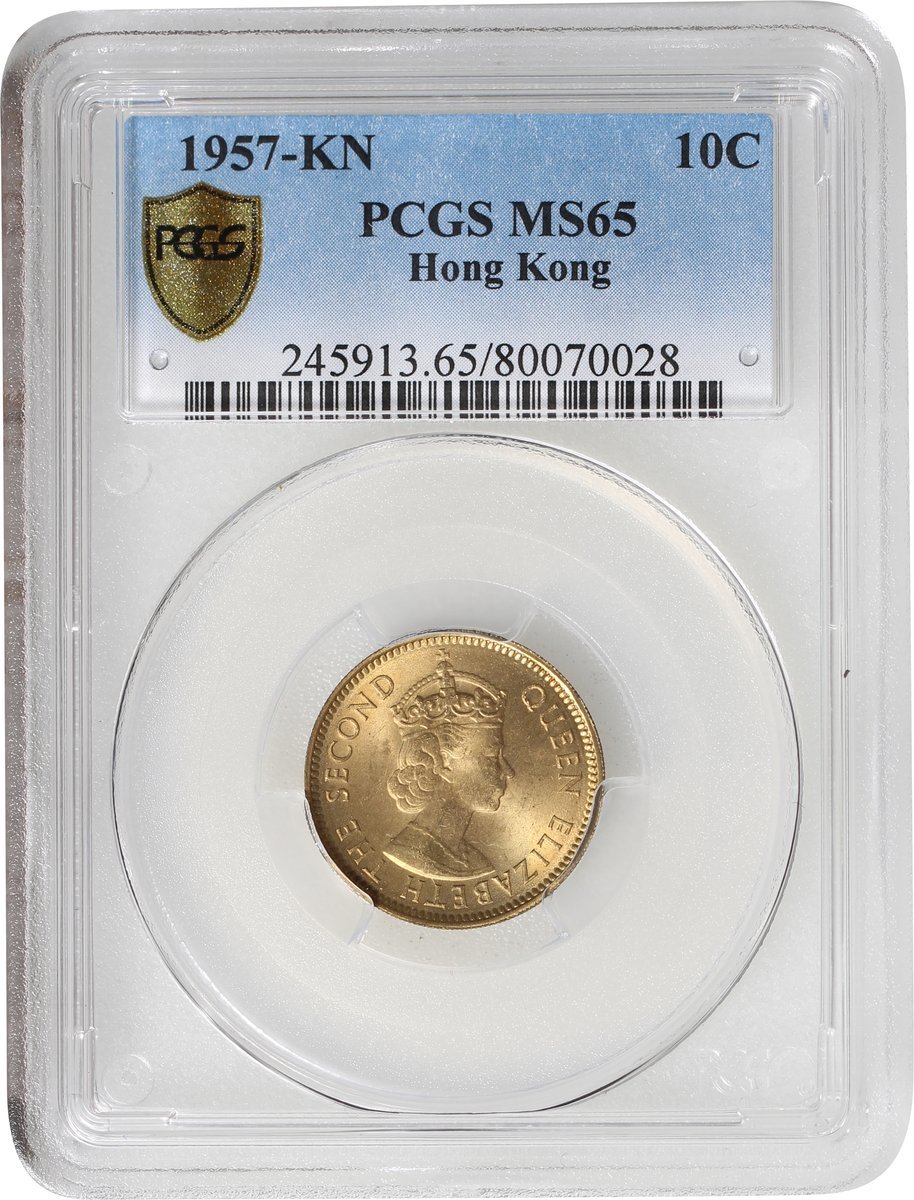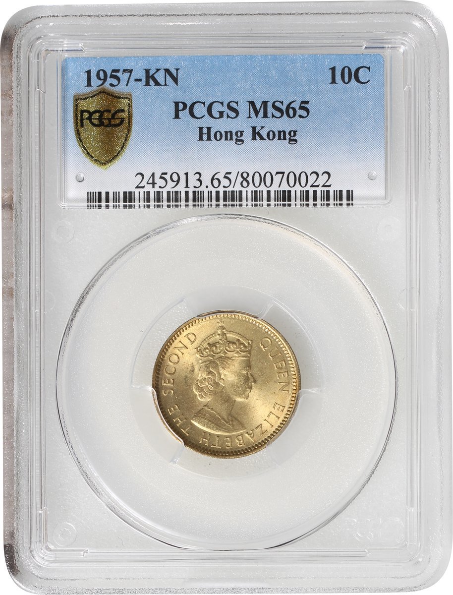 Hong Kong, a pair of nickel brass 10 cents, 1957KN, both PCGS MS65.(2)