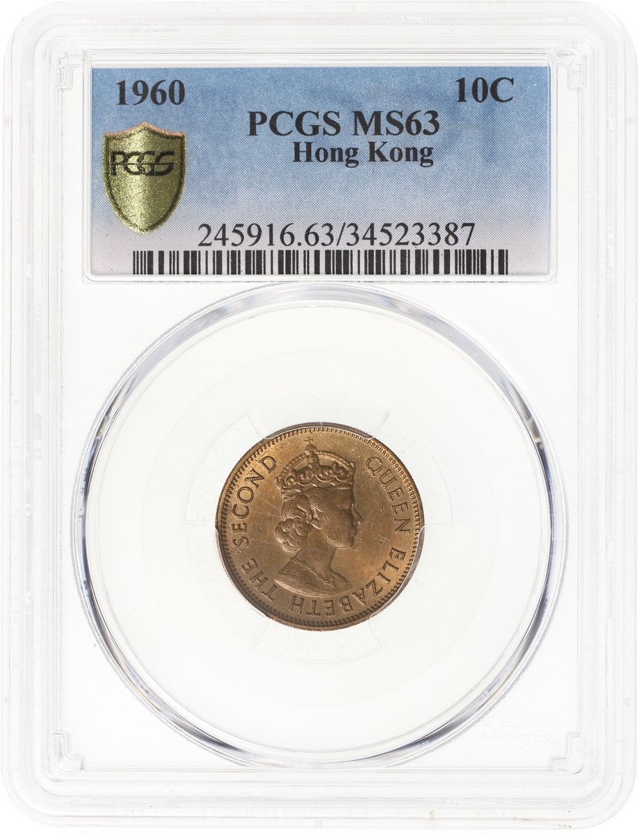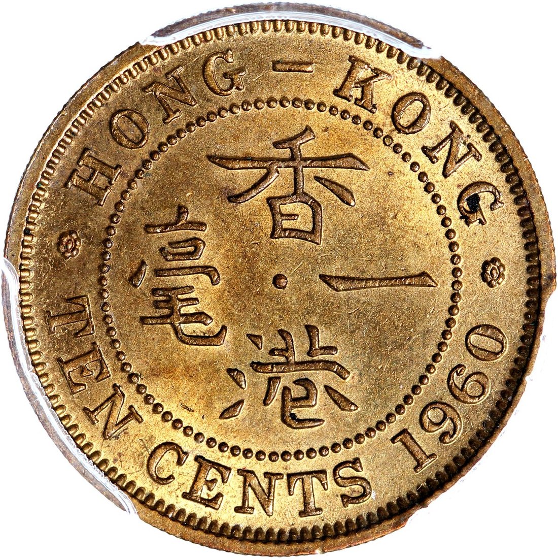 Hong Kong, nickel brass 10 cents, 1960, PCGS MS63