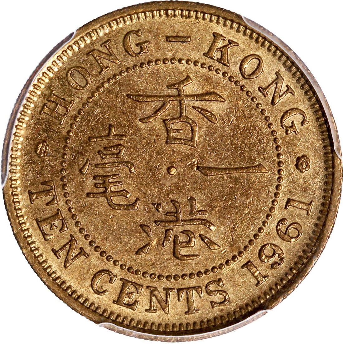 Hong Kong, nickel brass 10 cents, 1961, PCGS MS62