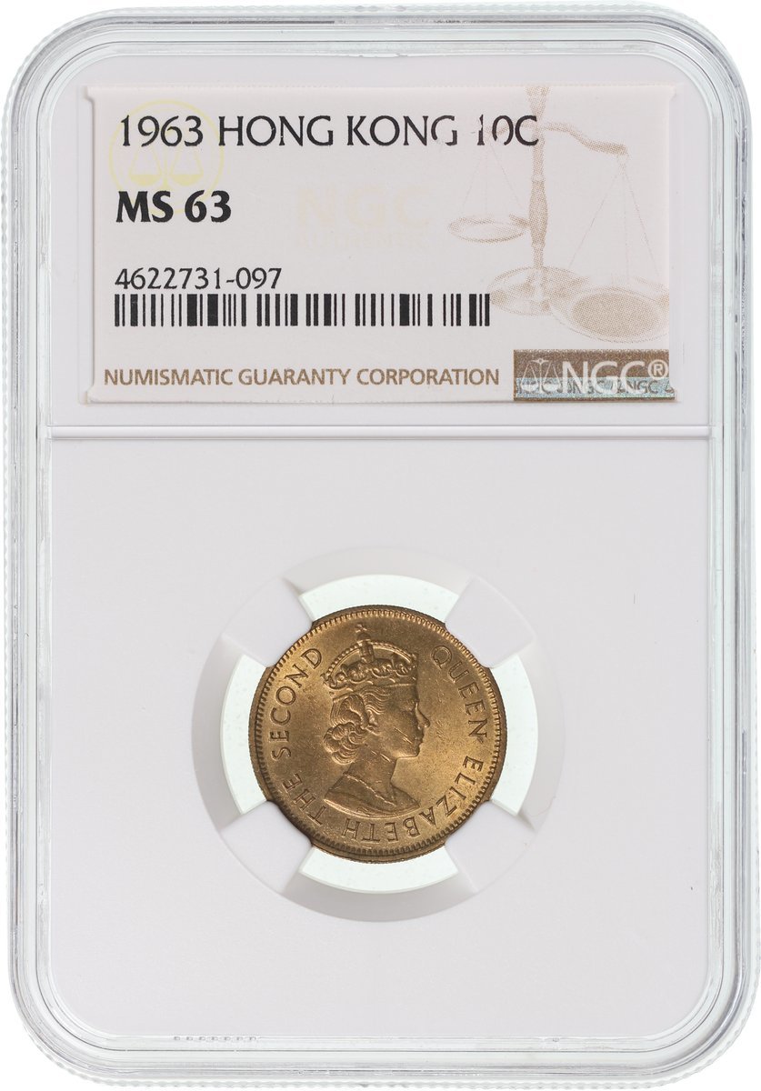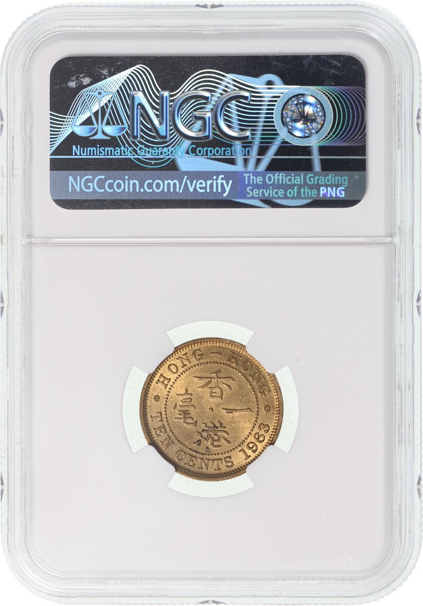 Hong Kong, nickel brass 10 cents, 1963, NGC MS63