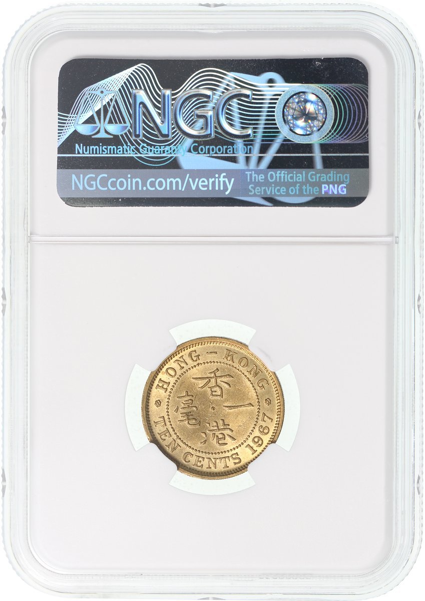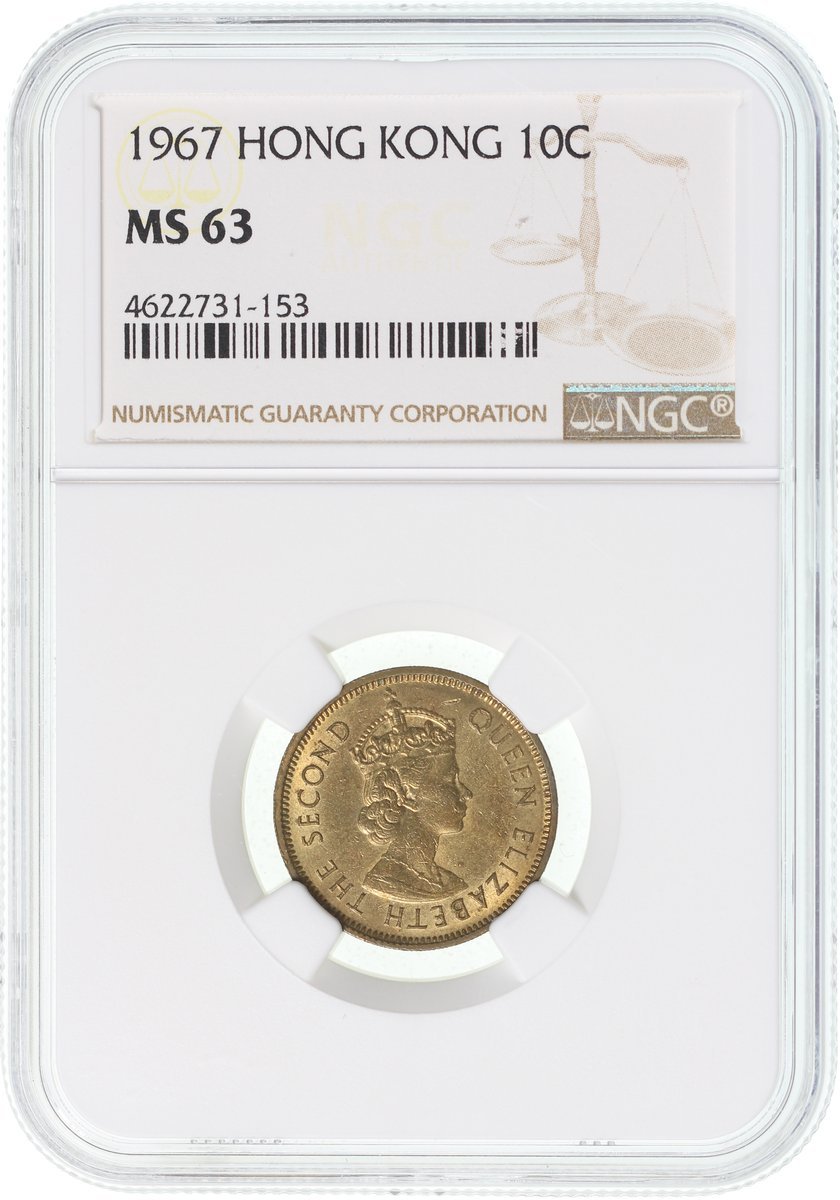 Hong Kong, nickel brass 10 cents, 1967, NGC MS63