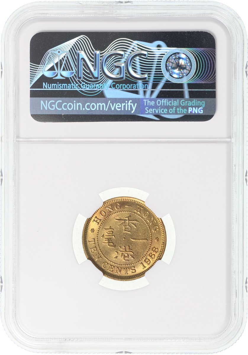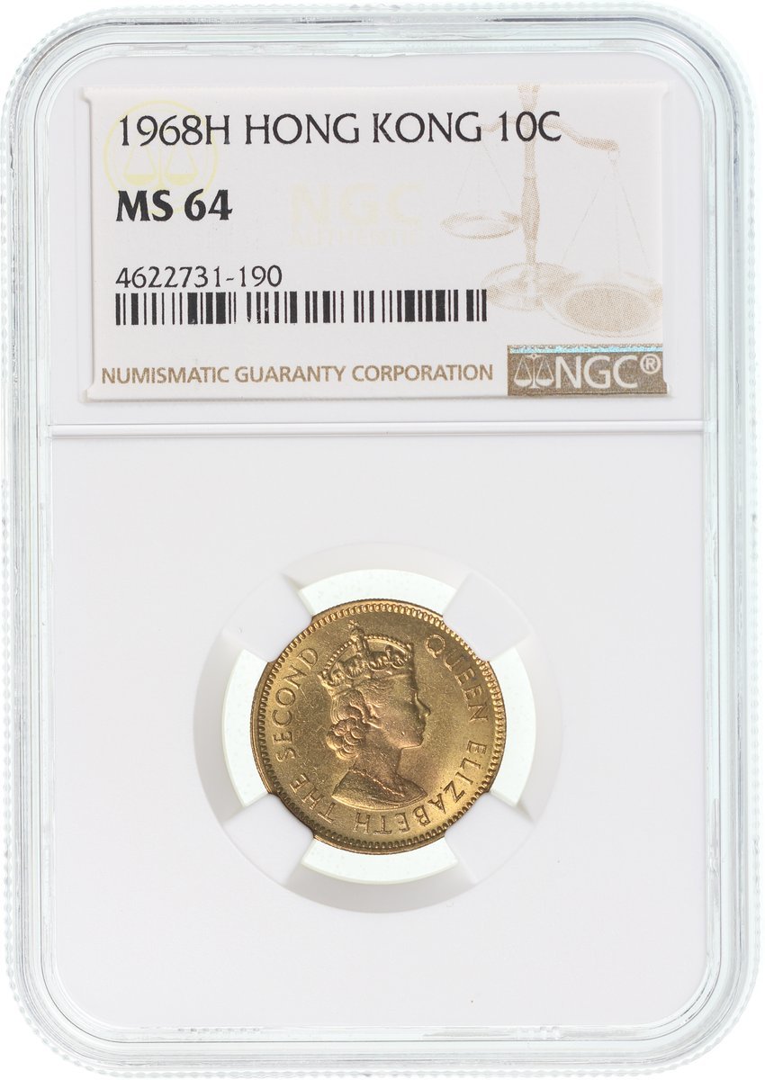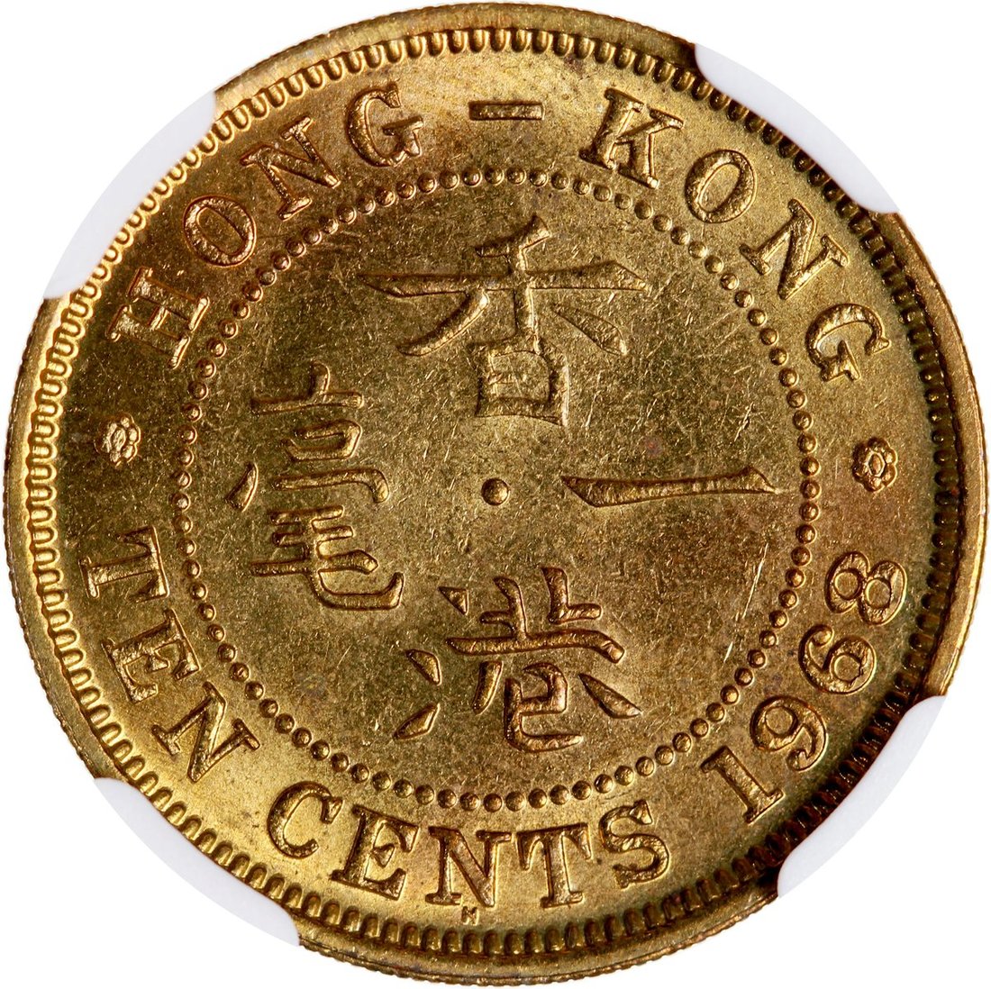 Hong Kong, nickel brass 10 cents, 1968-H, NGC MS64