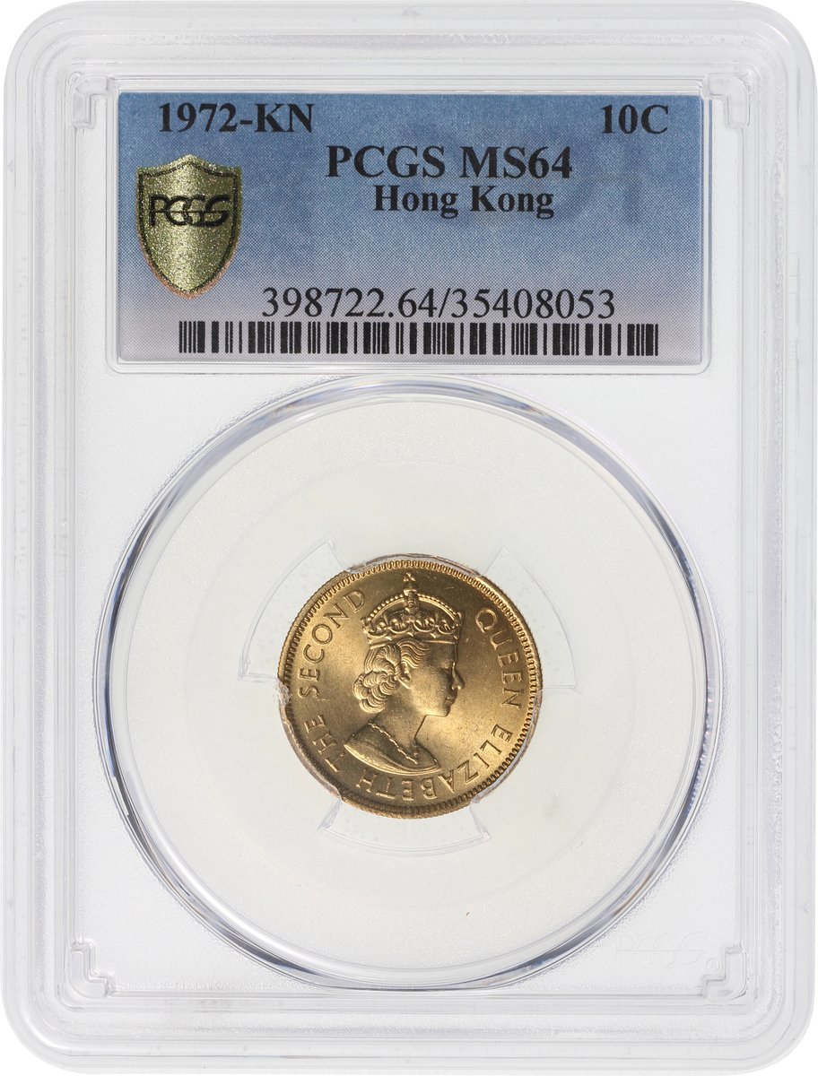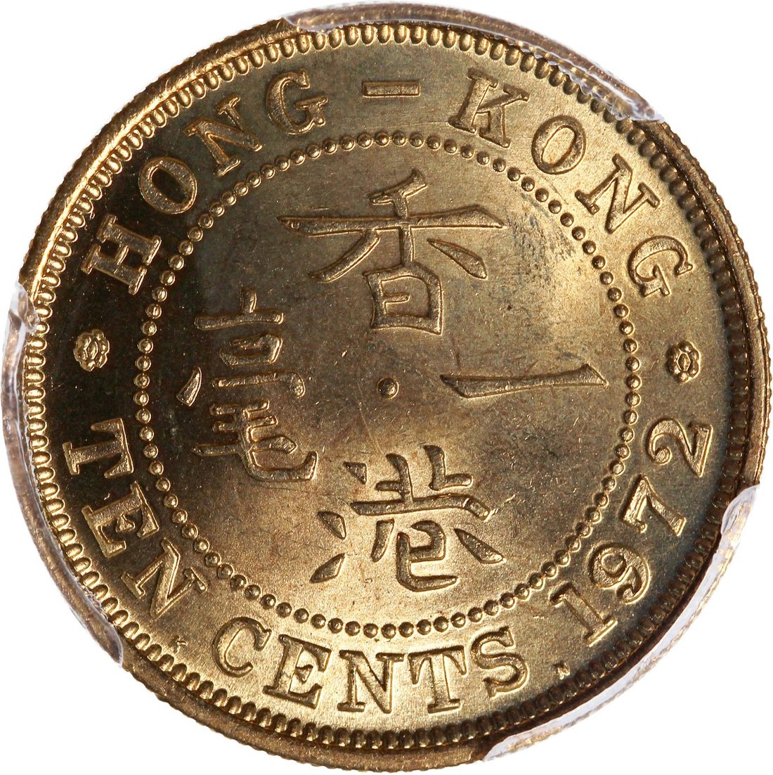Hong Kong, nickel brass 10 cents, 1972-KN, PCGS MS64