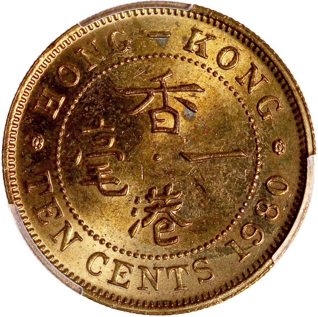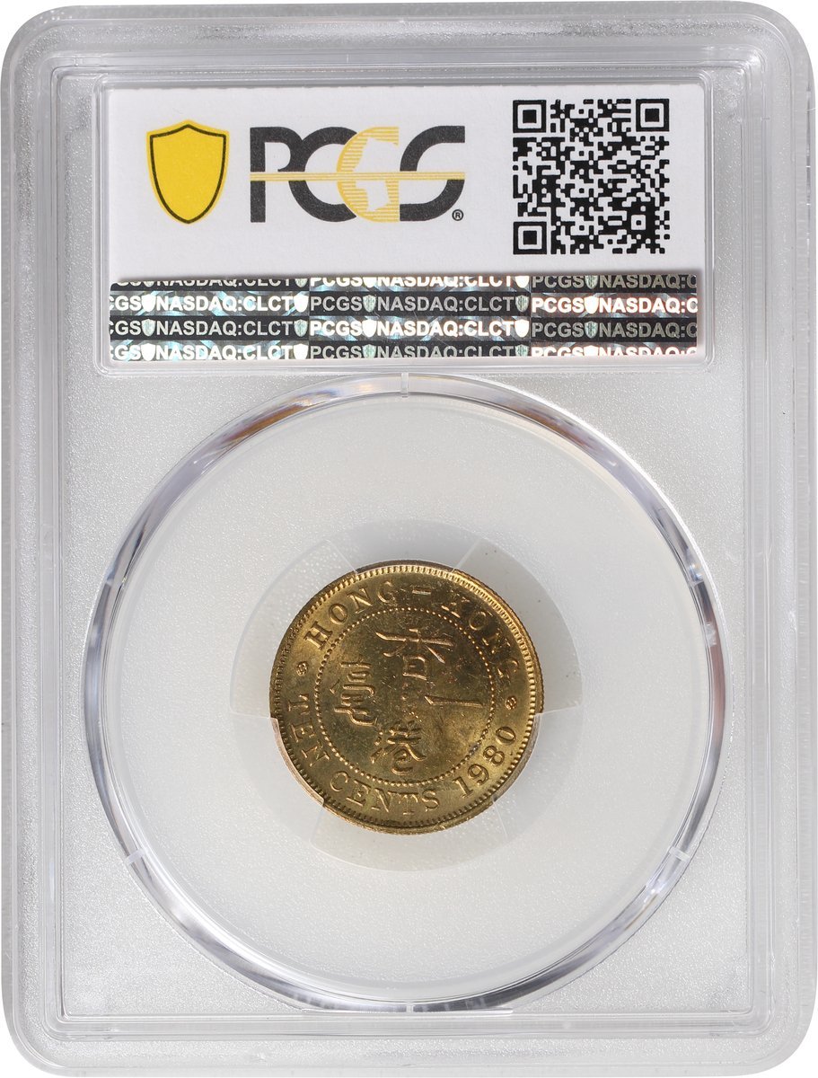 Hong Kong, brass 10 cents, 1980, PCGS MS64