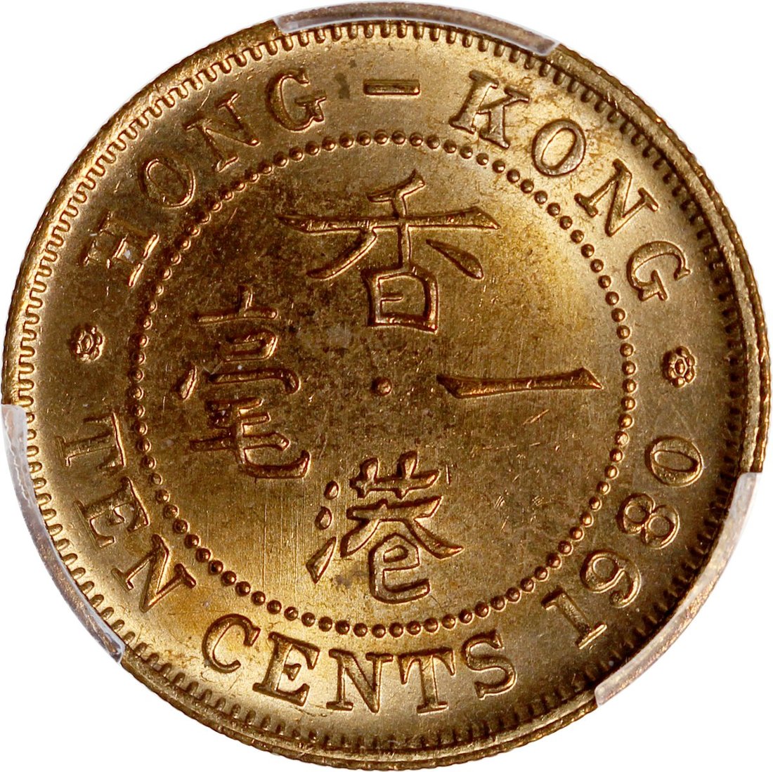 Hong Kong, brass 10 cents, 1980, PCGS MS64
