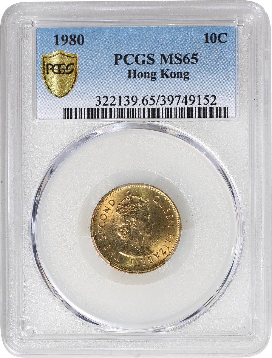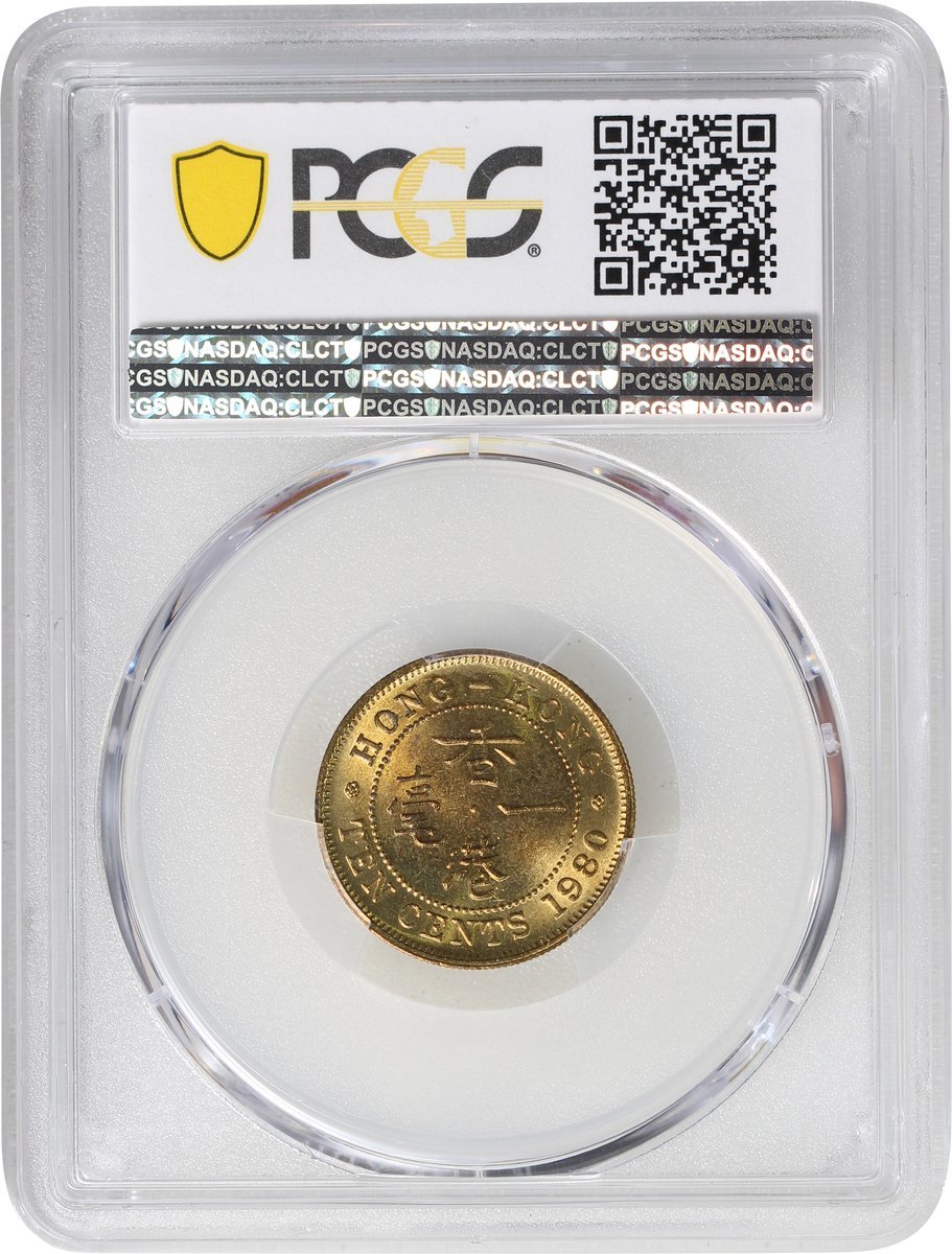 Hong Kong, brass 10 cents, 1980, PCGS MS65