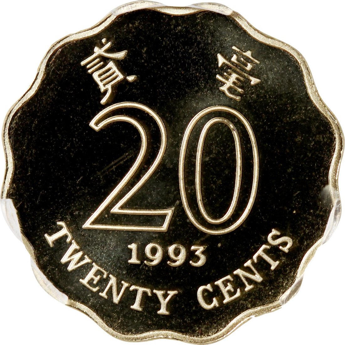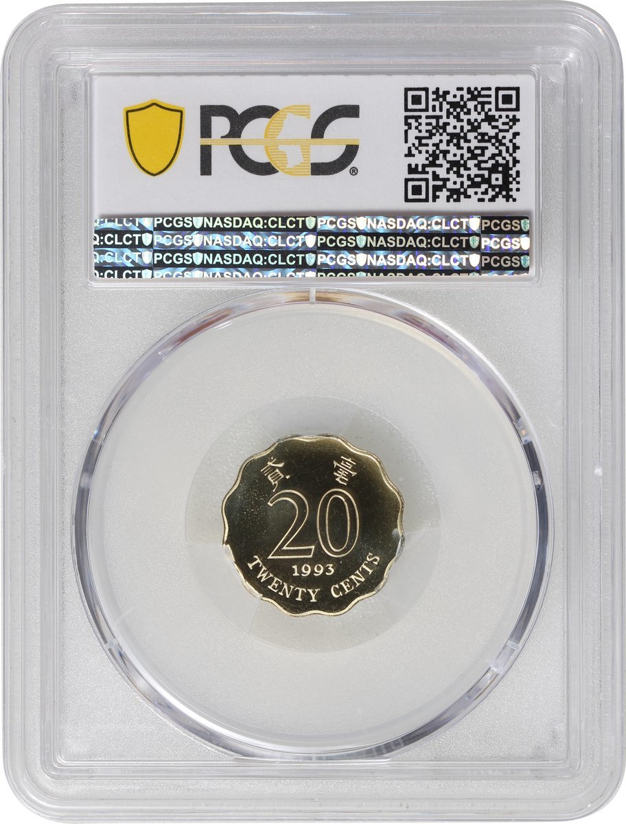 Hong Kong, nickel brass proof 20 cents, 1993, PCGS PR69DCAM