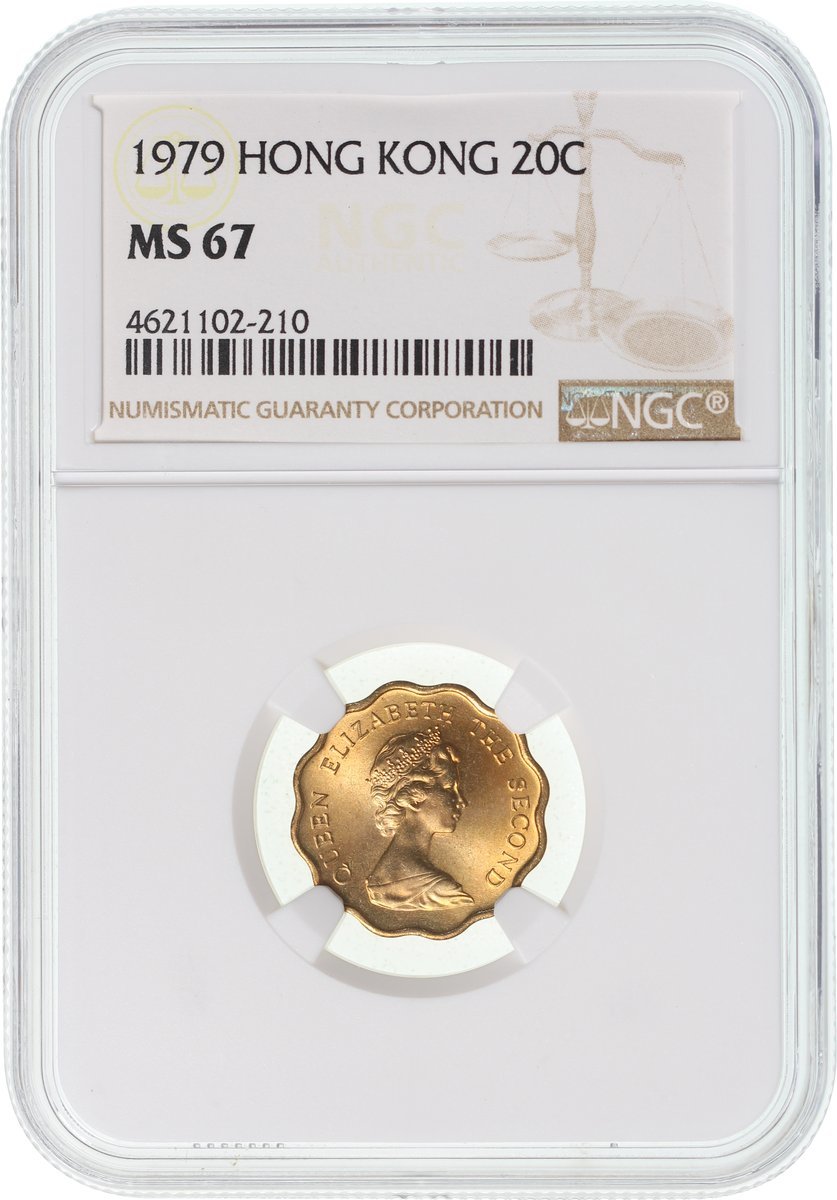 Hong Kong, a pair of nickel brass 20 cents, 1979, both graded NGC MS67 (2)