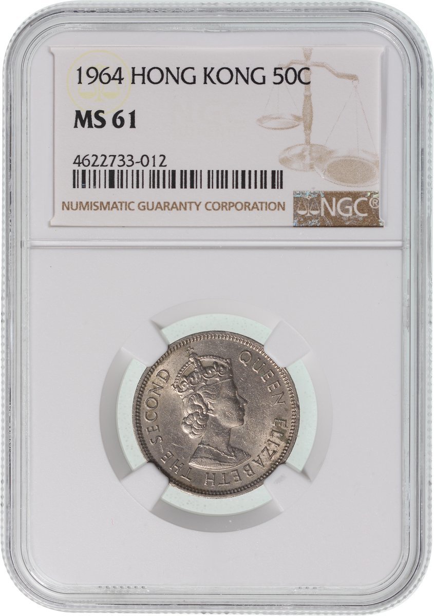 Hong Kong, copper nickel 50 cents, 1964, NGC MS61
