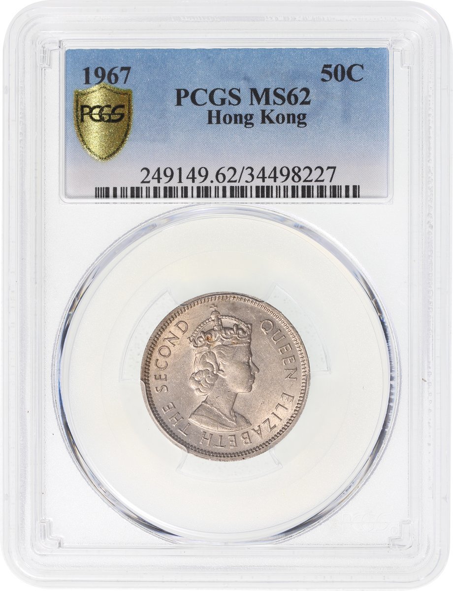 Hong Kong, copper nickel 50 cents, 1967, PCGS MS62
