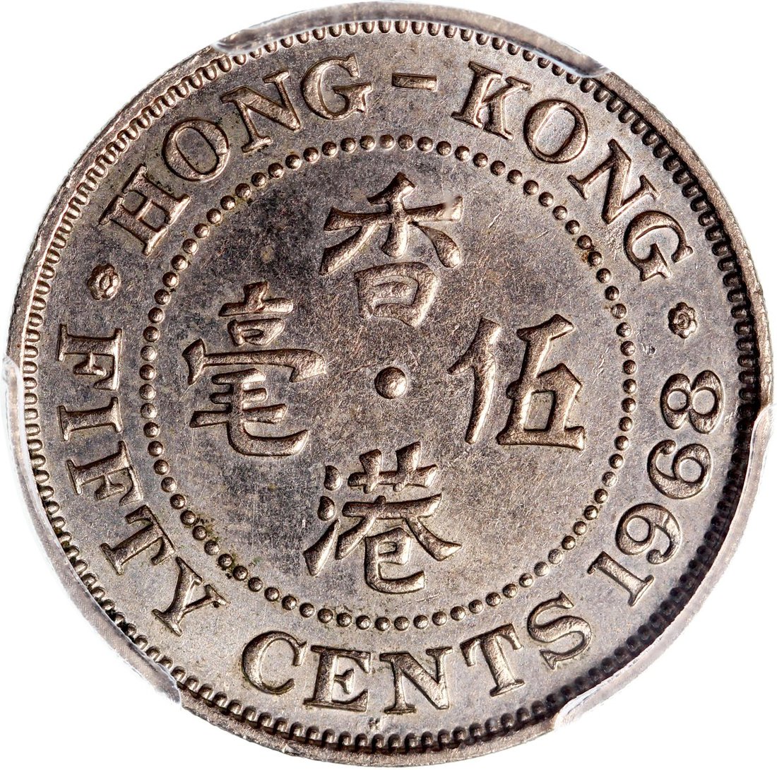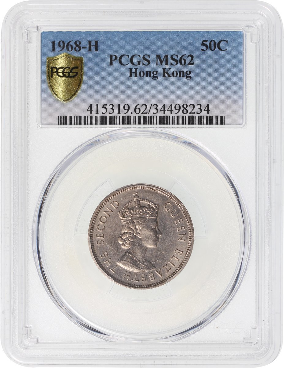 Hong Kong, copper nickel 50 cents, 1968-H, PCGS MS62