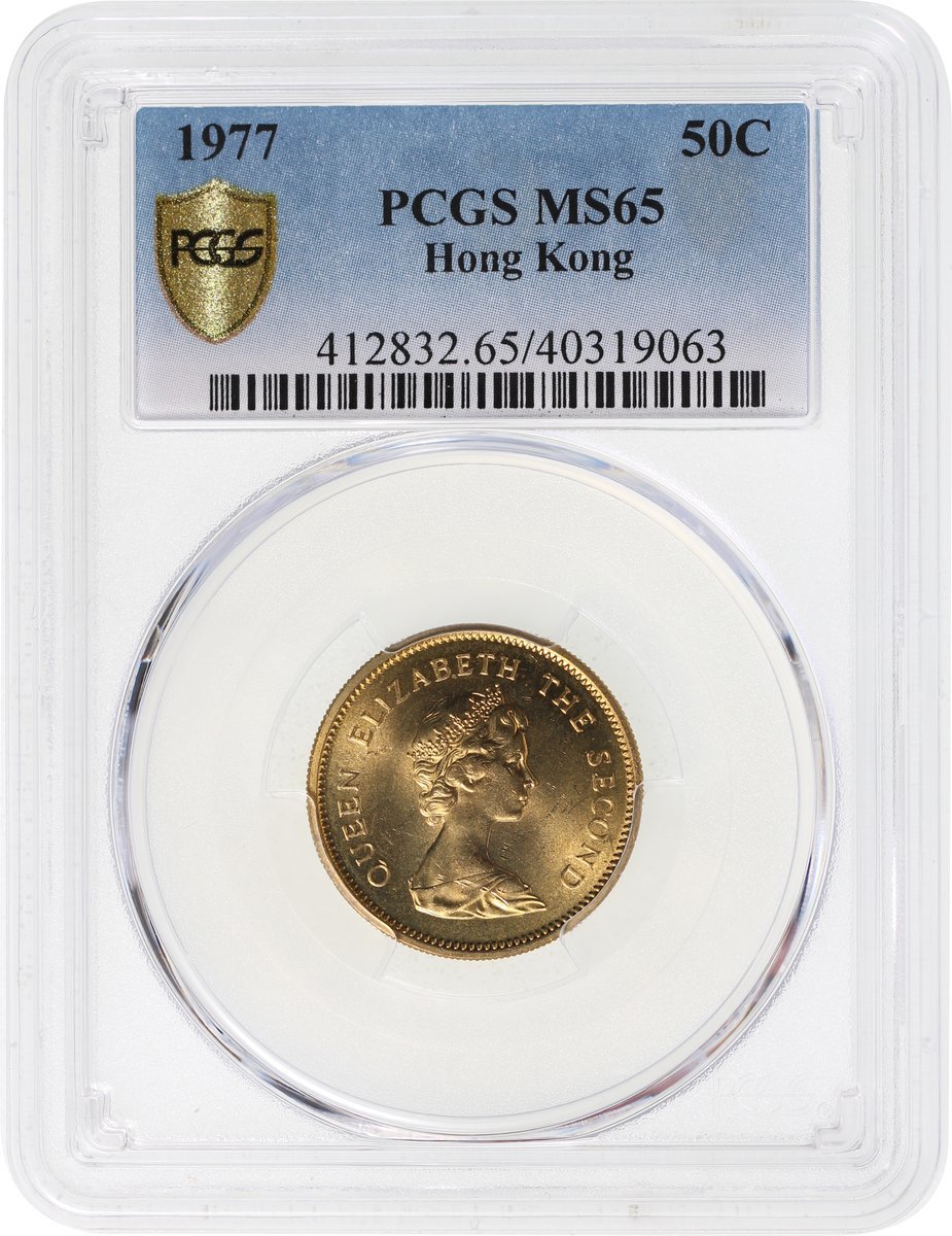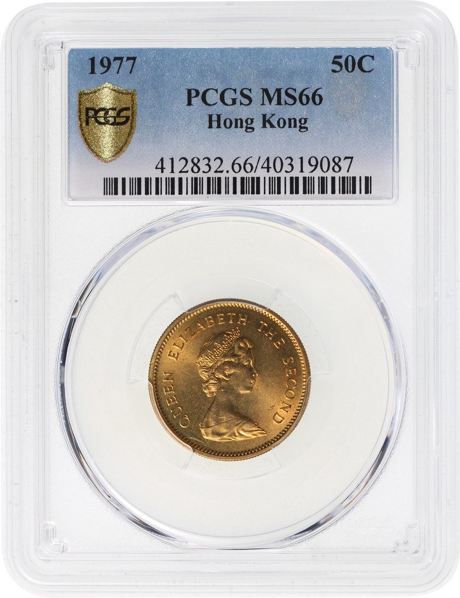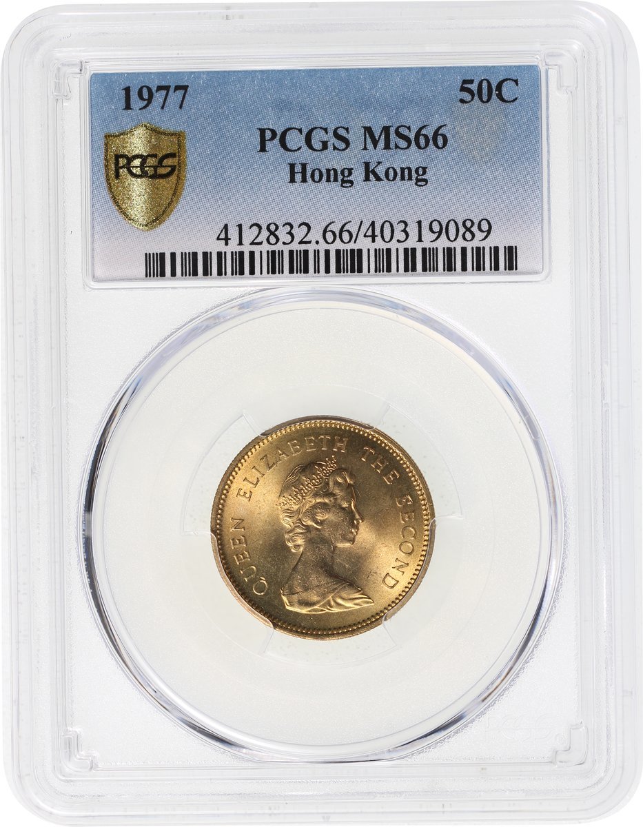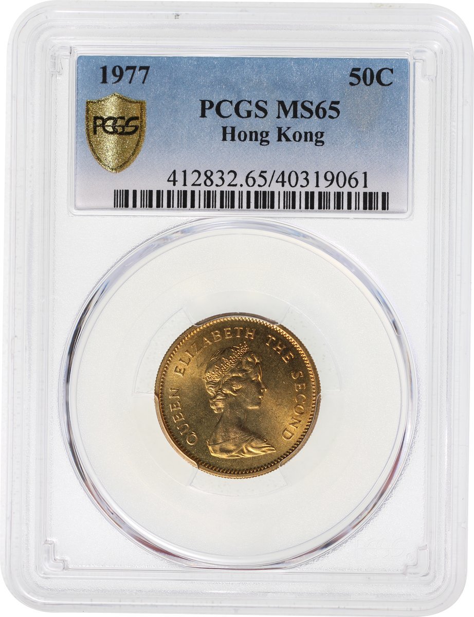 1977年香港5毫一組9枚,1枚評PCGS MS64, 6枚MS65及2枚MS66,MS66為最高分