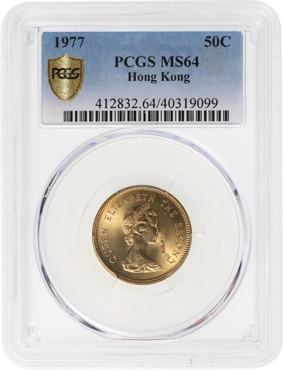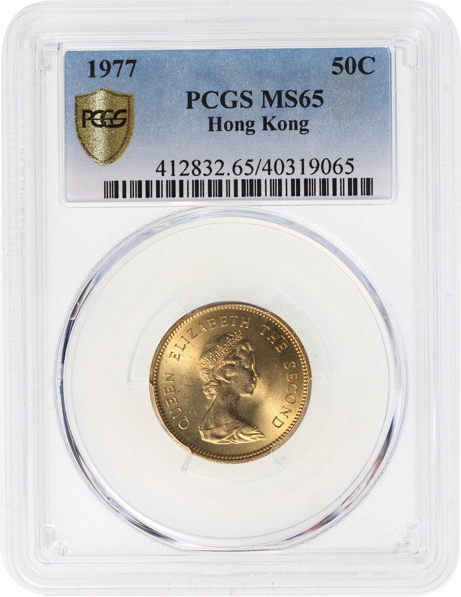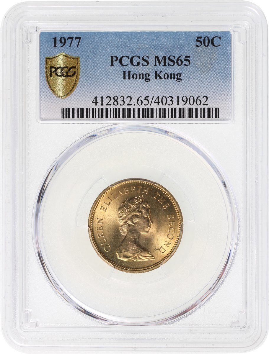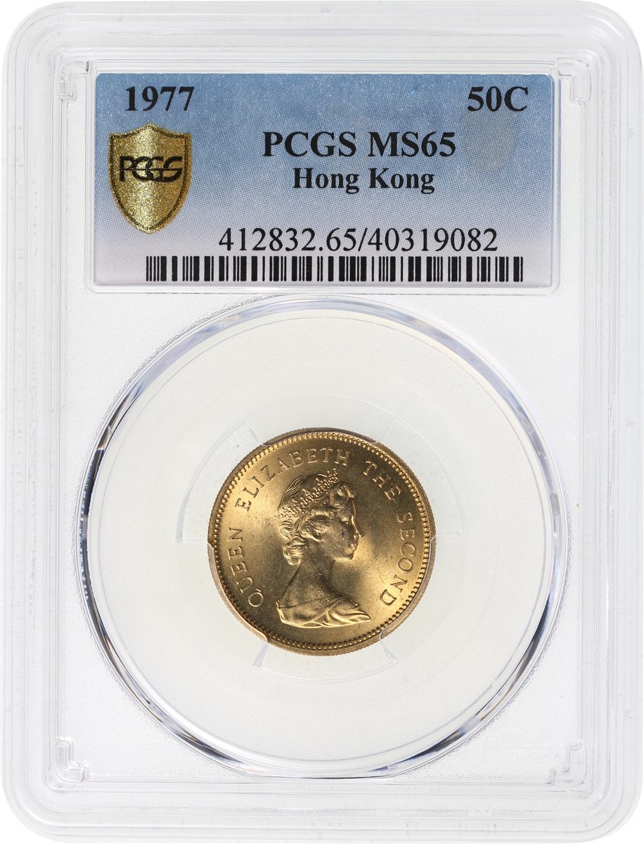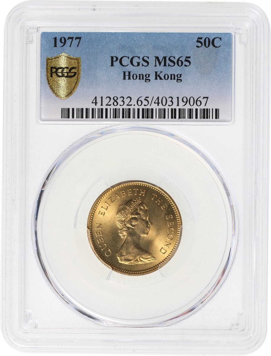 1977年香港5毫一組9枚,1枚評PCGS MS64, 6枚MS65及2枚MS66,MS66為最高分