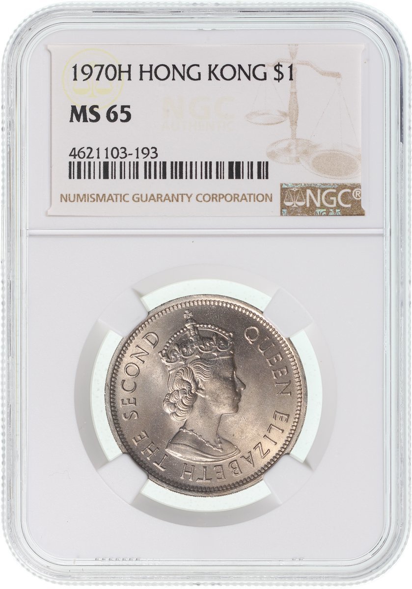 Hong Kong, copper nickel $1, 1970H, NGC MS65