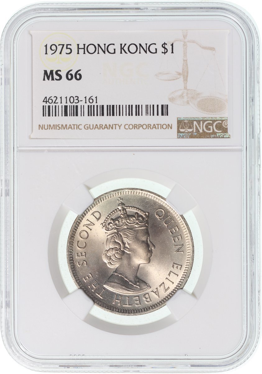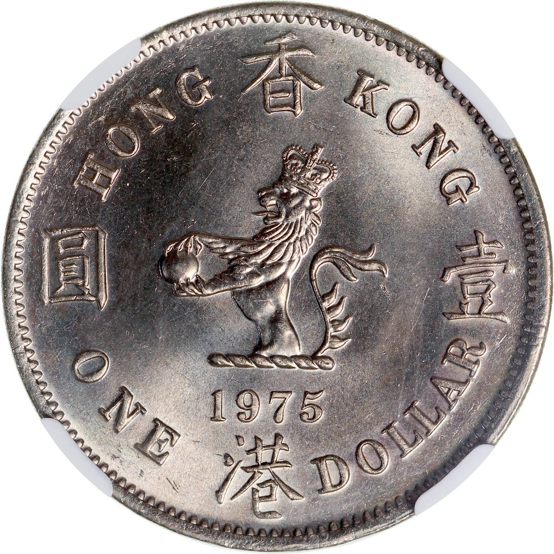 Hong Kong, copper nickel $1, 1975, NGC MS66